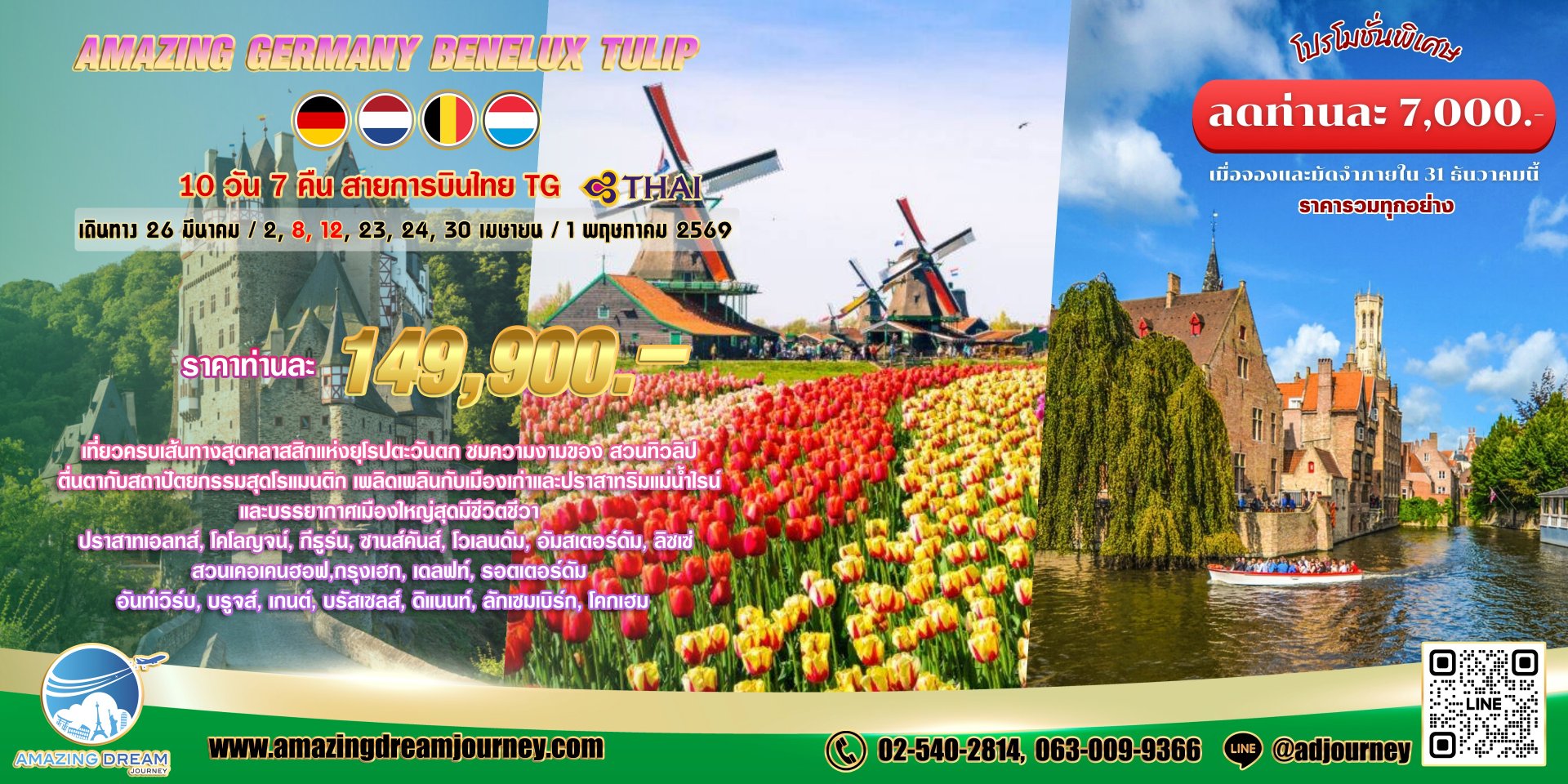 ออกเดินทางสู่ยุโรปในฤดูใบไม้ผลิและช่วงหยุดยาวสงกรานต์ กับทัวร์เส้นทางสวยไม่ซ้ำใคร สัมผัสเมืองเก่าแก่และธรรมชาติที่งดงาม เพลิดเพลินกับอาหารพื้นเมืองรสชาติต้นตำรับ พักโรงแรมมาตรฐานใจกลางเมืองสะดวกสบาย เดินทางด้วยรถโค้ชคุณภาพสูง พร้อมไกด์ผู้เชี่ยวชาญดูแลทุกขั้นตอน ให้คุณเที่ยวอย่างสนุกสนาน เพลิดเพลิน และเต็มอิ่มกับทุกช่วงเวลา พร้อมคุ้มค่ากับราคาที่สุดพิเศษ