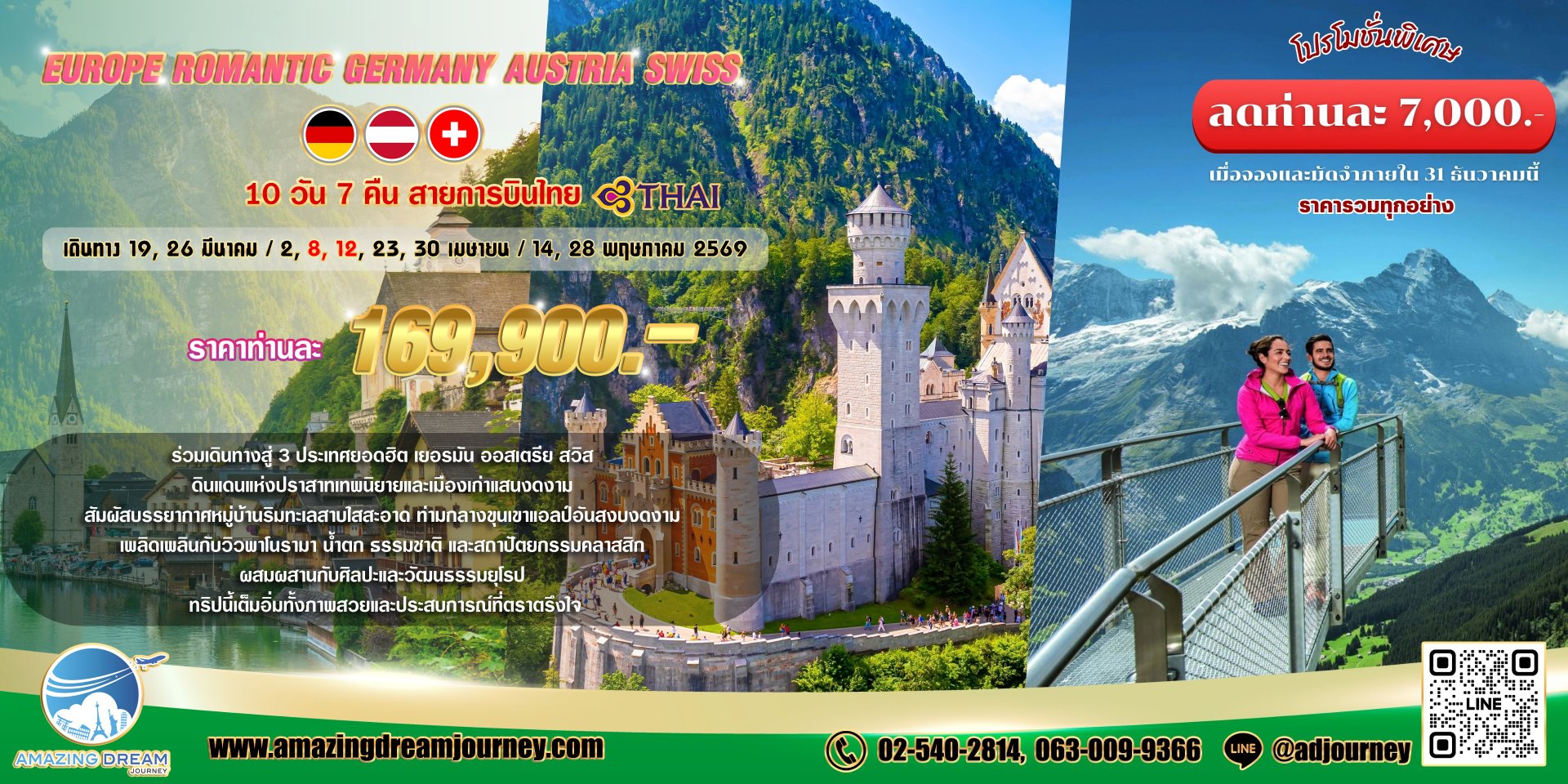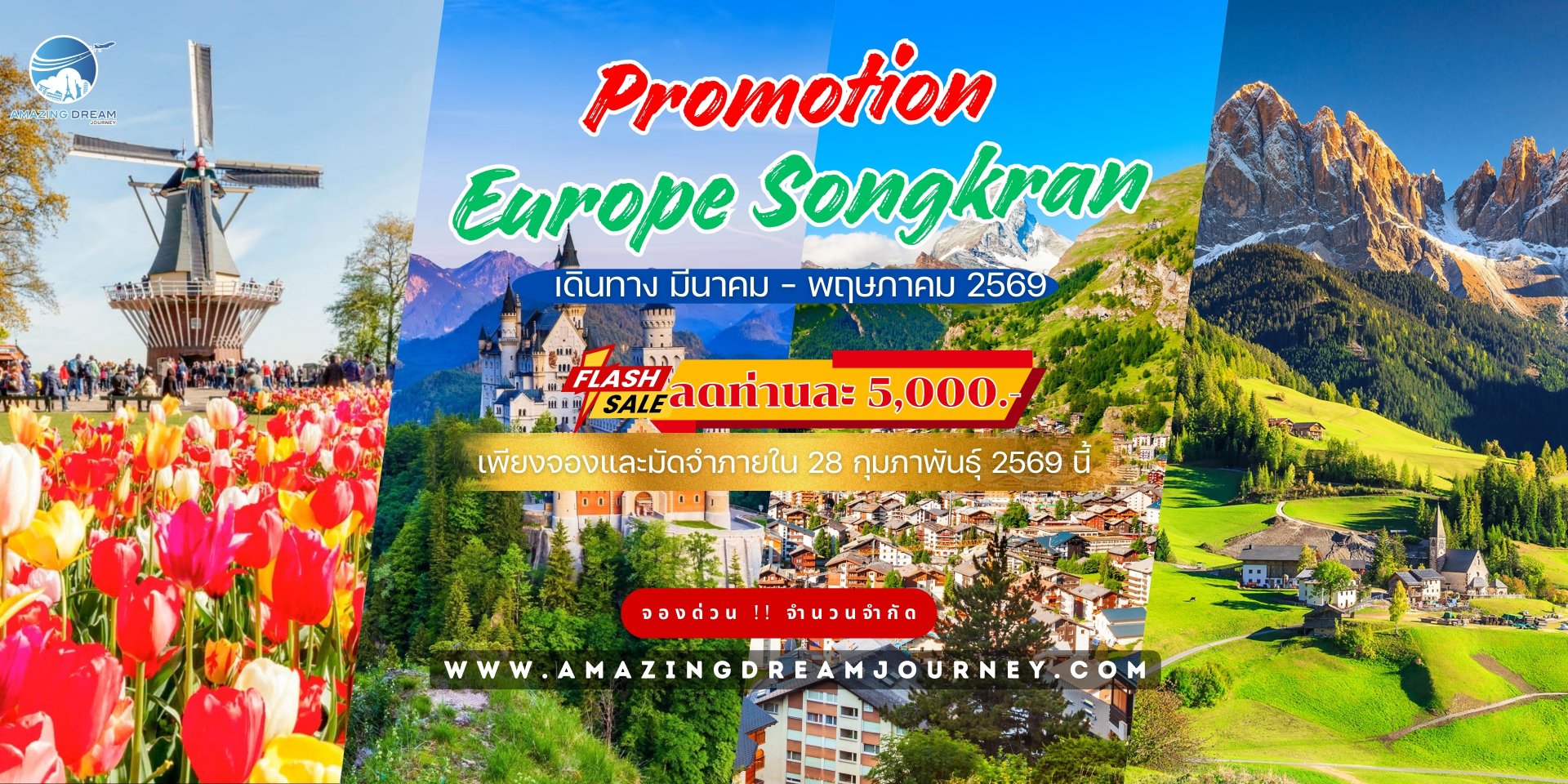 ออกเดินทางสู่ยุโรปในฤดูใบไม้ผลิและช่วงหยุดยาวสงกรานต์ กับทัวร์เส้นทางสวยไม่ซ้ำใคร สัมผัสเมืองเก่าแก่และธรรมชาติที่งดงาม เพลิดเพลินกับอาหารพื้นเมืองรสชาติต้นตำรับ พักโรงแรมมาตรฐานใจกลางเมืองสะดวกสบาย เดินทางด้วยรถโค้ชคุณภาพสูง พร้อมไกด์ผู้เชี่ยวชาญดูแลทุกขั้นตอน ให้คุณเที่ยวอย่างสนุกสนาน เพลิดเพลิน และเต็มอิ่มกับทุกช่วงเวลา พร้อมคุ้มค่ากับราคาที่สุดพิเศษ