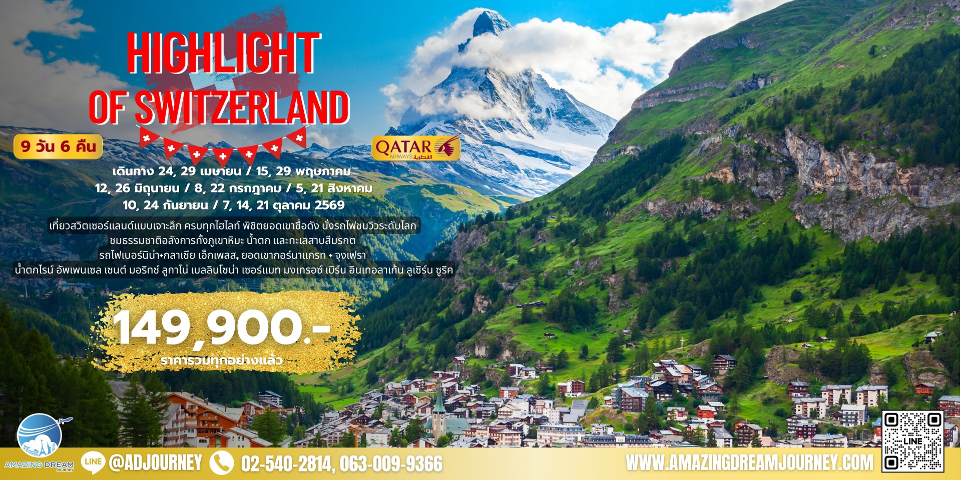 สัมผัสการเดินทางระดับพรีเมียม สู่ยุโรปในฤดูร้อน ช่วงเวลาที่ธรรมชาติสวยงามที่สุด ด้วยอากาศสดใส เมืองคลาสสิก และวิวเทือกเขาแอลป์เขียวขจี ทริปนี้คัดสรรเส้นทางไฮไลต์และประสบการณ์คุณภาพ ให้คุณเที่ยวสบาย ไม่เร่งรีบ พร้อมดื่มด่ำทุกช่วงเวลาอย่างเต็มอิ่ม พักโรงแรมระดับพรีเมียม คัดสรรอาหารคุณภาพดีทุกมื้อ พร้อมไกด์มืออาชีพดูแลใกล้ชิด เที่ยวสบาย อุ่นใจ และเต็มไปด้วยความประทับใจตลอดการเดินทาง