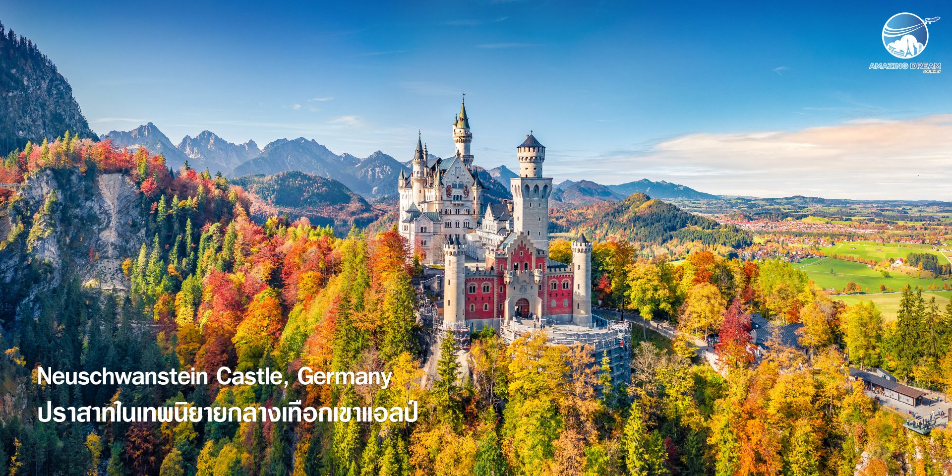 ปราสาทนอยชวานสไตน์ (Neuschwanstein Castle) เป็นหนึ่งในสถานที่ท่องเที่ยวที่สวยงามและมีชื่อเสียงที่สุดในเยอรมนี โดยเฉพาะอย่างยิ่งในช่วงฤดูใบไม้ร่วง (กลางเดือนกันยายนถึงต้นเดือนพฤศจิกายน) ที่ใบไม้รอบปราสาทจะเปลี่ยนสีเป็นสีทอง สีแดง และสีส้ม สร้างบรรยากาศที่งดงามราวกับหลุดออกมาจากเทพนิยาย