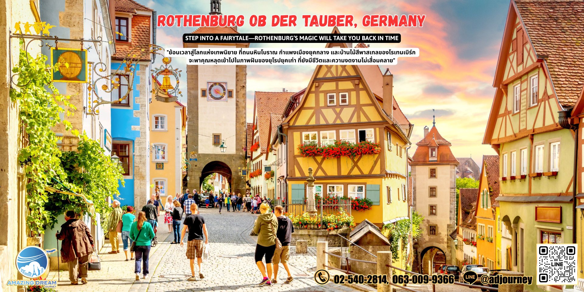 เมืองเล็ก ๆ อันงดงามในรัฐบาวาเรีย ประเทศเยอรมนี ที่ตั้งอยู่บนเนินเขาริมแม่น้ำเทาเบอร์ เมืองนี้ขึ้นชื่อว่าเป็นหนึ่งในเมืองยุคกลางที่ได้รับการอนุรักษ์ไว้อย่างสมบูรณ์ที่สุดในยุโรป และยังคงเปล่งมนต์เสน่ห์แห่งอดีตให้ผู้มาเยือนได้หลงใหลไม่รู้ลืม