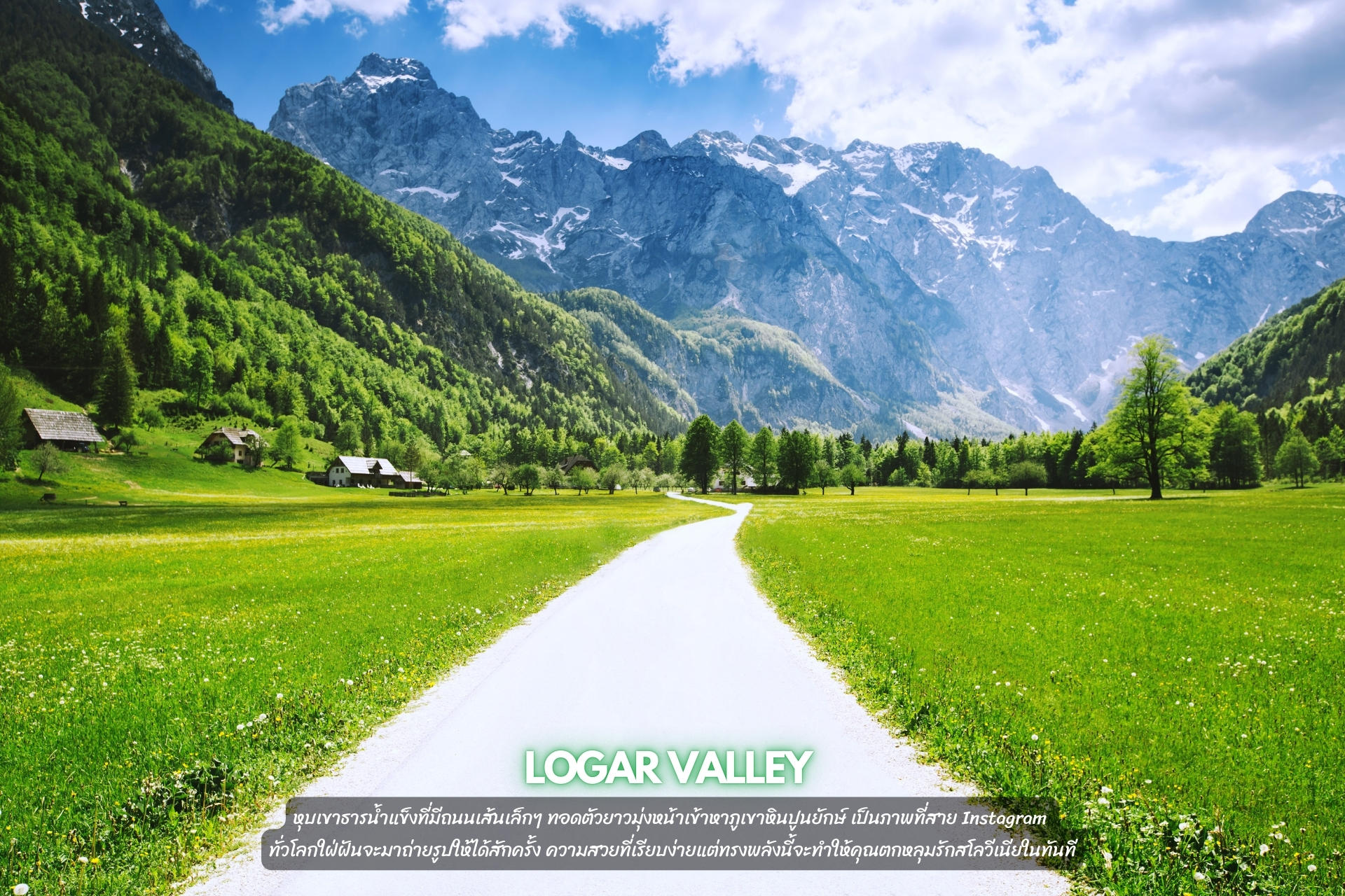 2. Logar Valley (หุบเขาที่สวยที่สุดในยุโรป): หุบเขาธารน้ำแข็งที่มีถนนเส้นเล็กๆ ทอดตัวยาวมุ่งหน้าเข้าหาภูเขาหินปูนยักษ์ เป็นภาพที่สาย Instagram ทั่วโลกใฝ่ฝันจะมาถ่ายรูปให้ได้สักครั้ง ความสวยที่เรียบง่ายแต่ทรงพลังนี้จะทำให้คุณตกหลุมรักสโลวีเนียในทันที