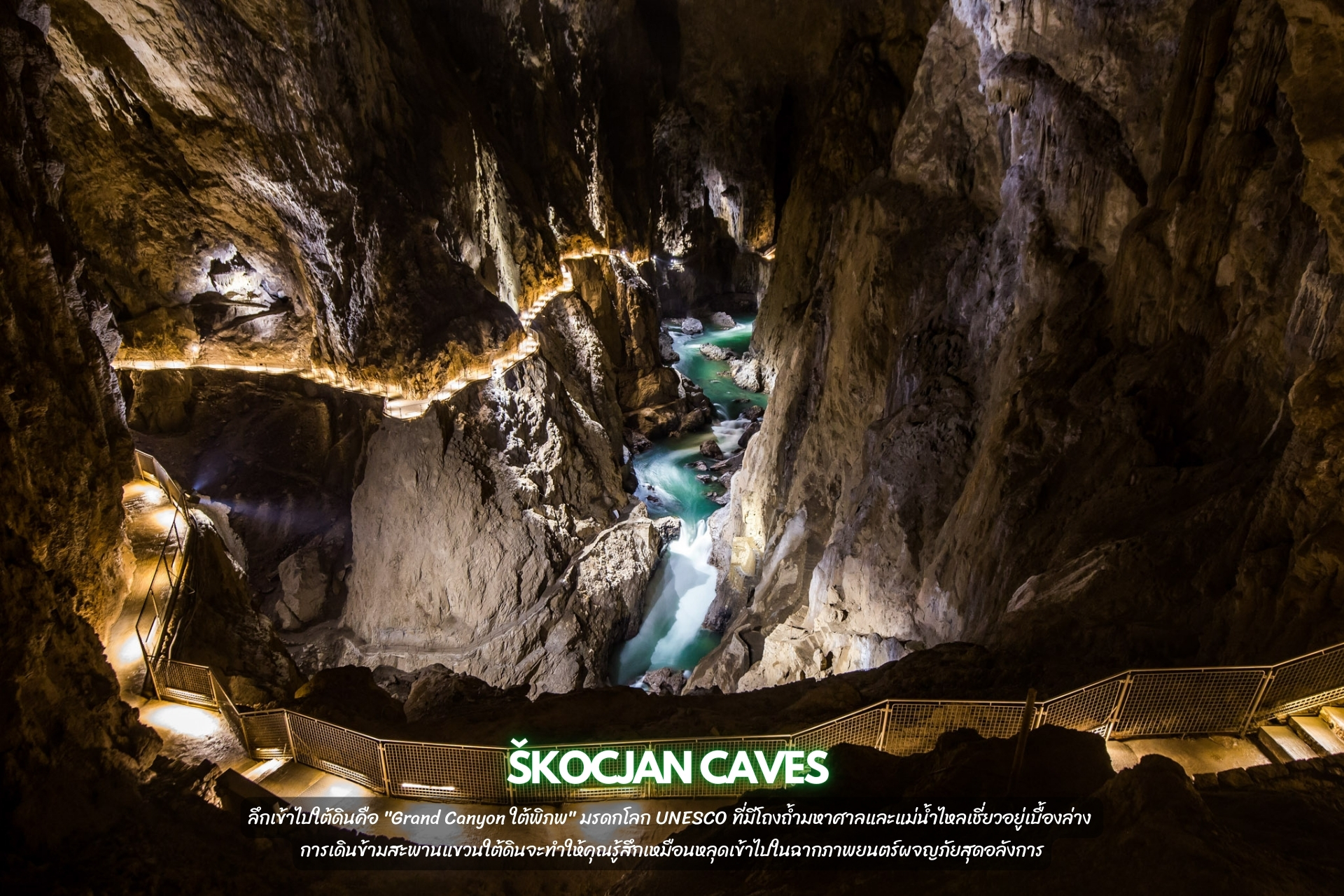 6. Škocjan Caves (อาณาจักรใต้พิภพ): ลึกเข้าไปใต้ดินคือ "Grand Canyon ใต้พิภพ" มรดกโลก UNESCO ที่มีโถงถ้ำมหาศาลและแม่น้ำไหลเชี่ยวอยู่เบื้องล่าง การเดินข้ามสะพานแขวนใต้ดินจะทำให้คุณรู้สึกเหมือนหลุดเข้าไปในฉากภาพยนตร์ผจญภัยสุดอลังการ