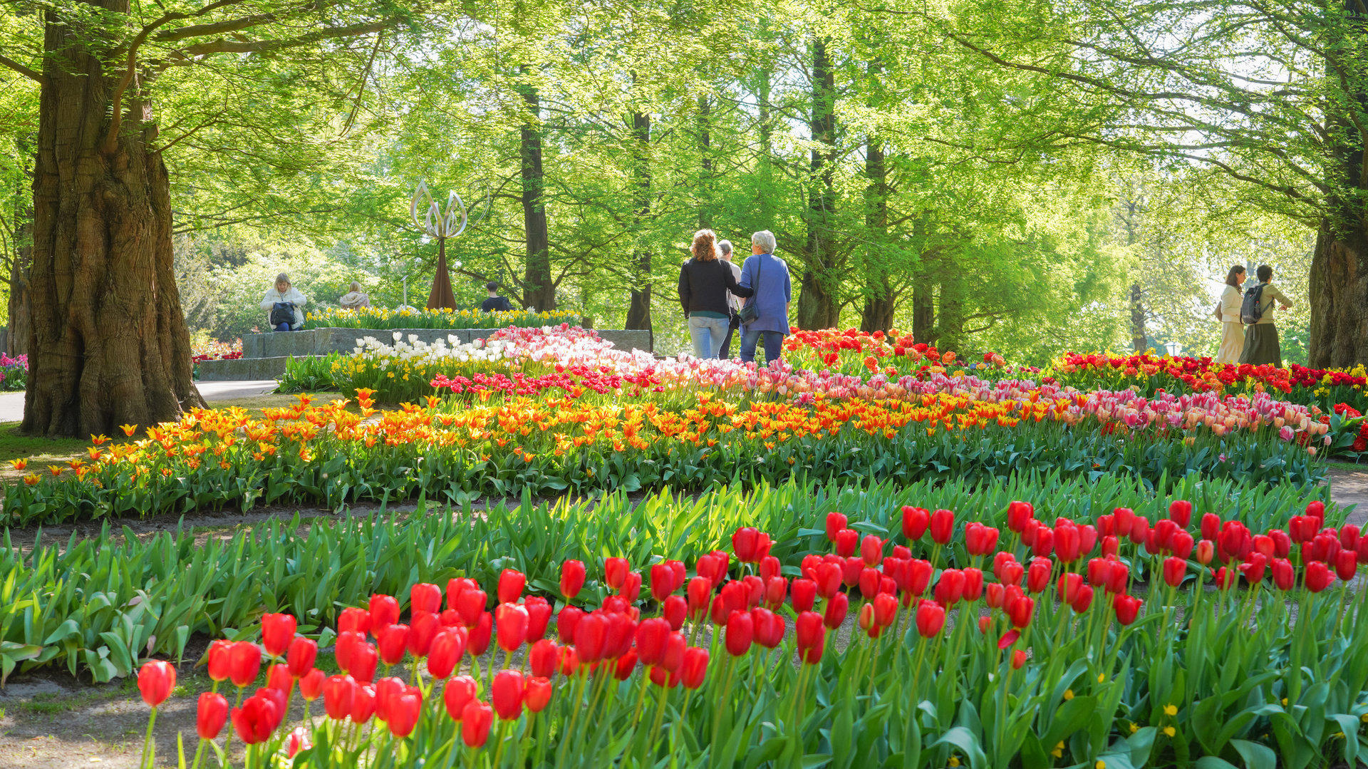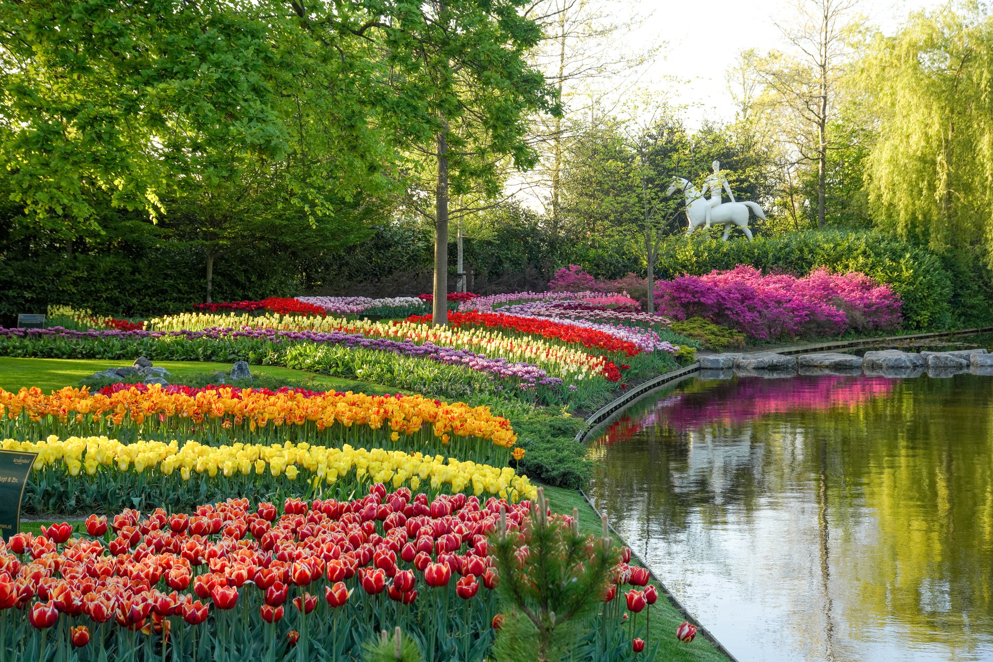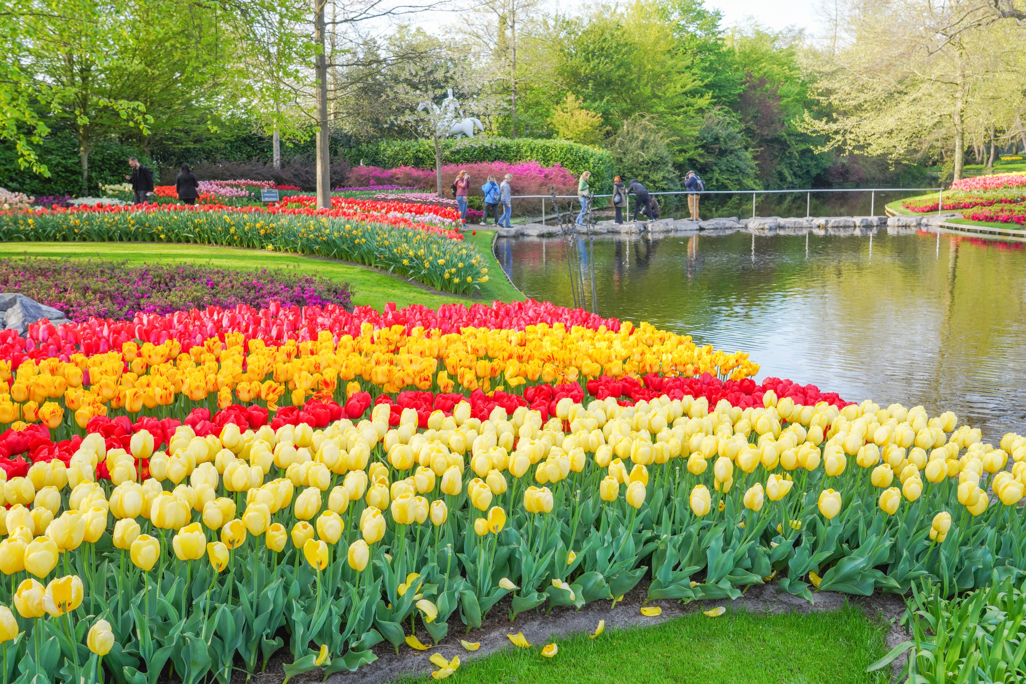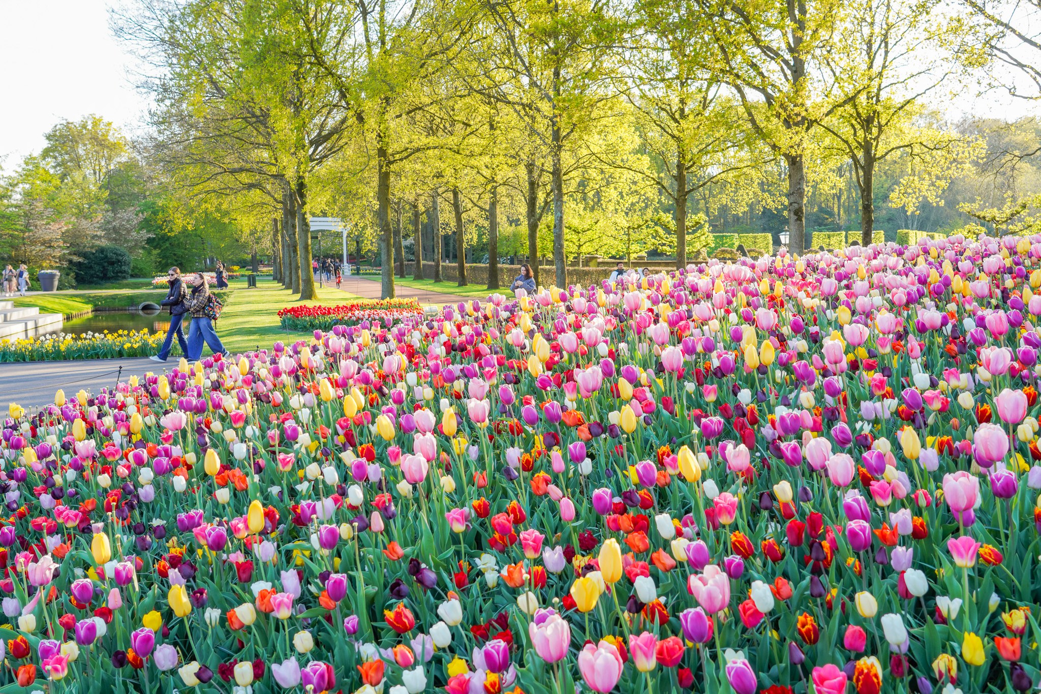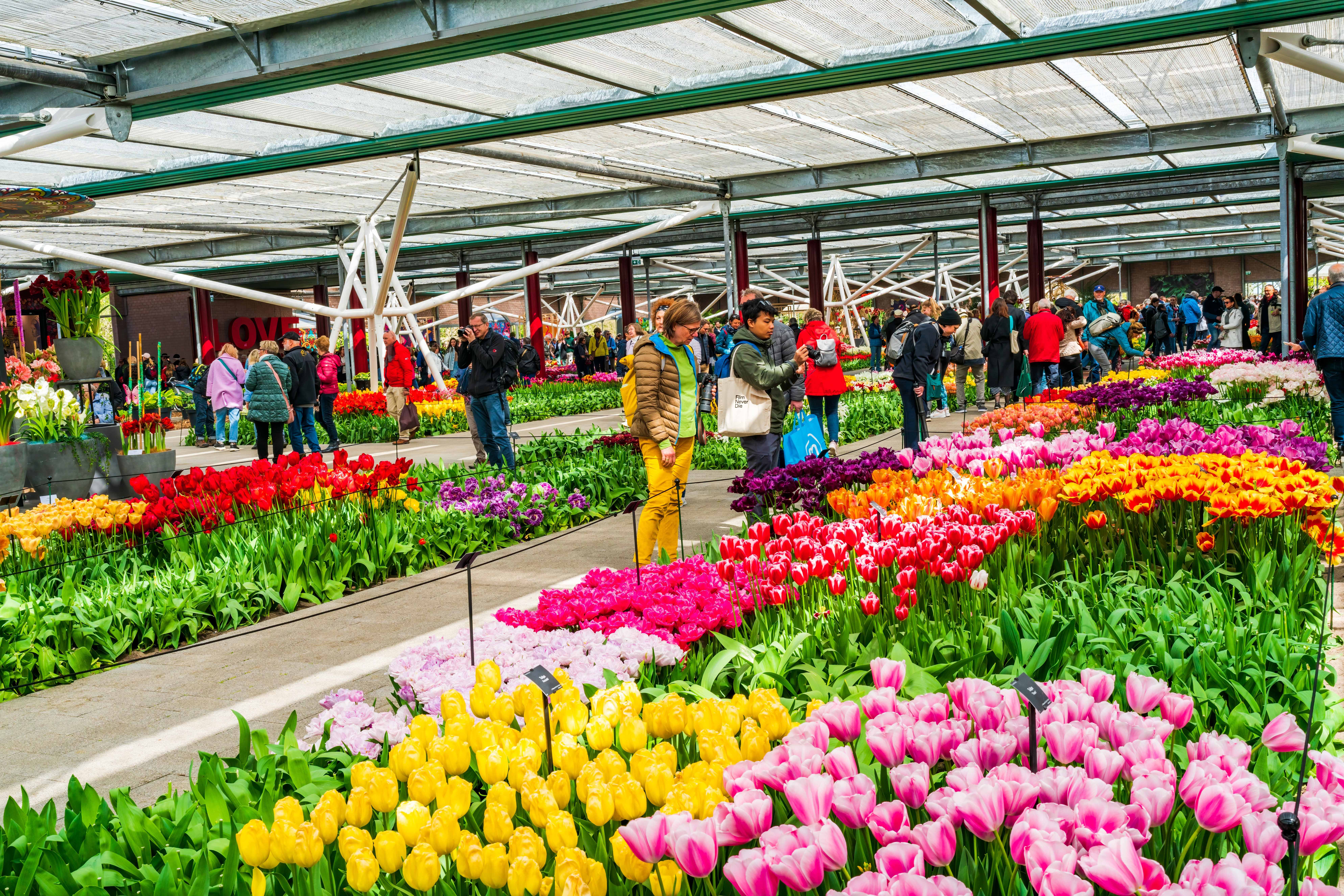 ภายในสวน Keukenhof เต็มไปด้วยดอกไม้มากกว่า 7 ล้านดอก ทั้งทิวลิป ไฮยาซินธ์ แดฟโฟดิล และดอกไม้ฤดูใบไม้ผลิอีกมากมาย ถูกจัดแต่งอย่างสวยงามเป็นโซนๆ ไม่ว่าจะเป็นสวนสไตล์อังกฤษ สวนญี่ปุ่น หรือสวนดอกไม้แบบโมเดิร์น