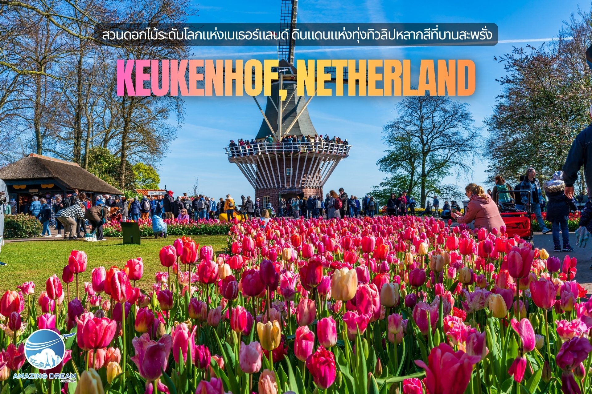 Keukenhof คือหนึ่งในจุดหมายปลายทางในฝันของนักเดินทางทั่วโลก โดยเฉพาะในช่วงฤดูใบไม้ผลิ เมื่อทุ่งดอกทิวลิปหลากสีสันบานสะพรั่งสุดสายตา เปลี่ยนพื้นที่ธรรมดาให้กลายเป็นโลกแห่งสีสันที่เหมือนหลุดออกมาจากเทพนิยาย
