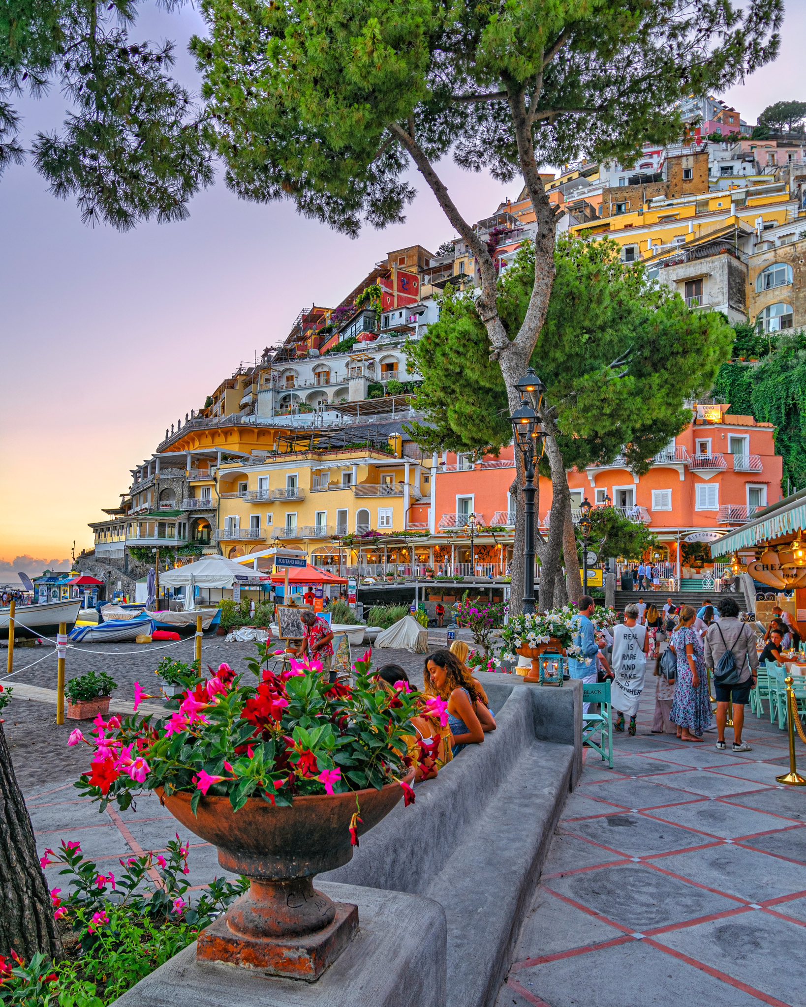 ช่วงพระอาทิตย์ตกคือช่วงเวลาที่ Amalfi Coast สวยที่สุด แสงสีทองสะท้อนผืนน้ำ ท้องฟ้าค่อย ๆ เปลี่ยนสี เป็นภาพที่ทั้งอบอุ่นและโรแมนติกจนอยากหยุดเวลาไว้ตรงนั้น