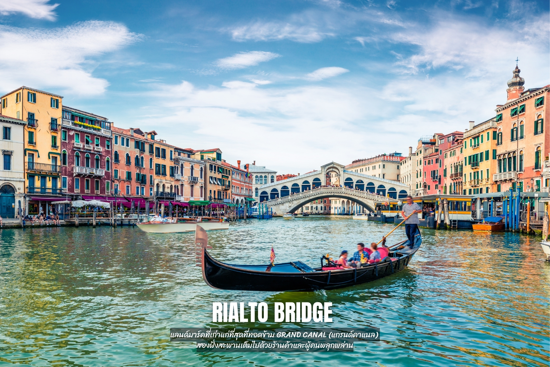 แลนด์มาร์คที่เก่าแก่ที่สุดที่ทอดข้าม Grand Canal (แกรนด์คาแนล) สองฝั่งสะพานเต็มไปด้วยร้านค้าและผู้คนพลุกพล่าน