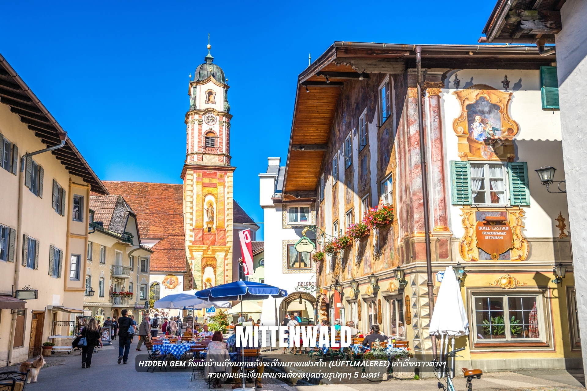 Hidden Gem ที่ผนังบ้านเกือบทุกหลังจะเขียนภาพเฟรสโก (Lüftlmalerei) เล่าเรื่องราวต่างๆ สวยงามและเงียบสงบจนต้องหยุดถ่ายรูปทุกๆ 5 เมตร!