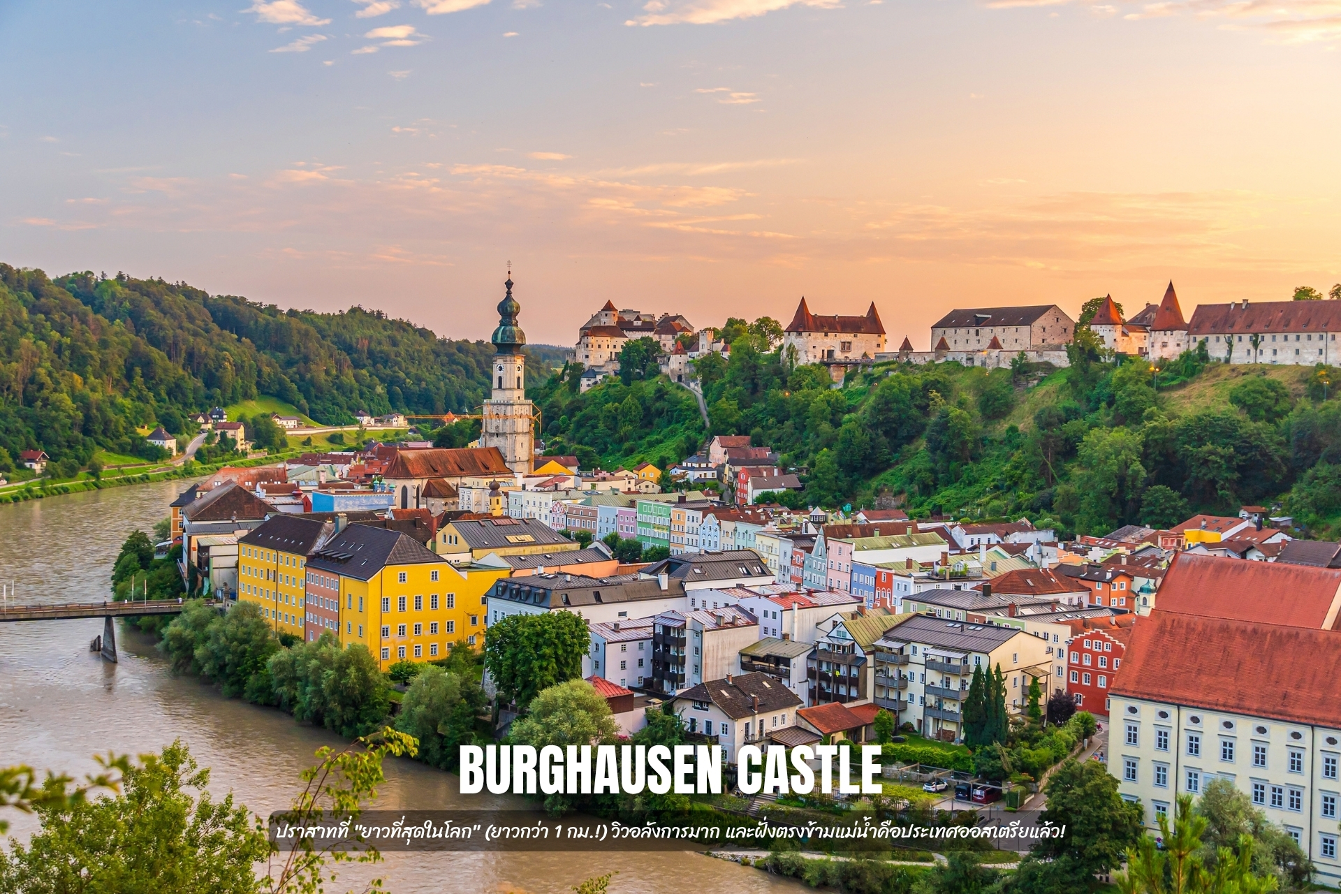 2. Burghausen Castle: ปราสาทที่ "ยาวที่สุดในโลก" (ยาวกว่า 1 กม.!) วิวอลังการมาก และฝั่งตรงข้ามแม่น้ำคือประเทศออสเตรียแล้ว!