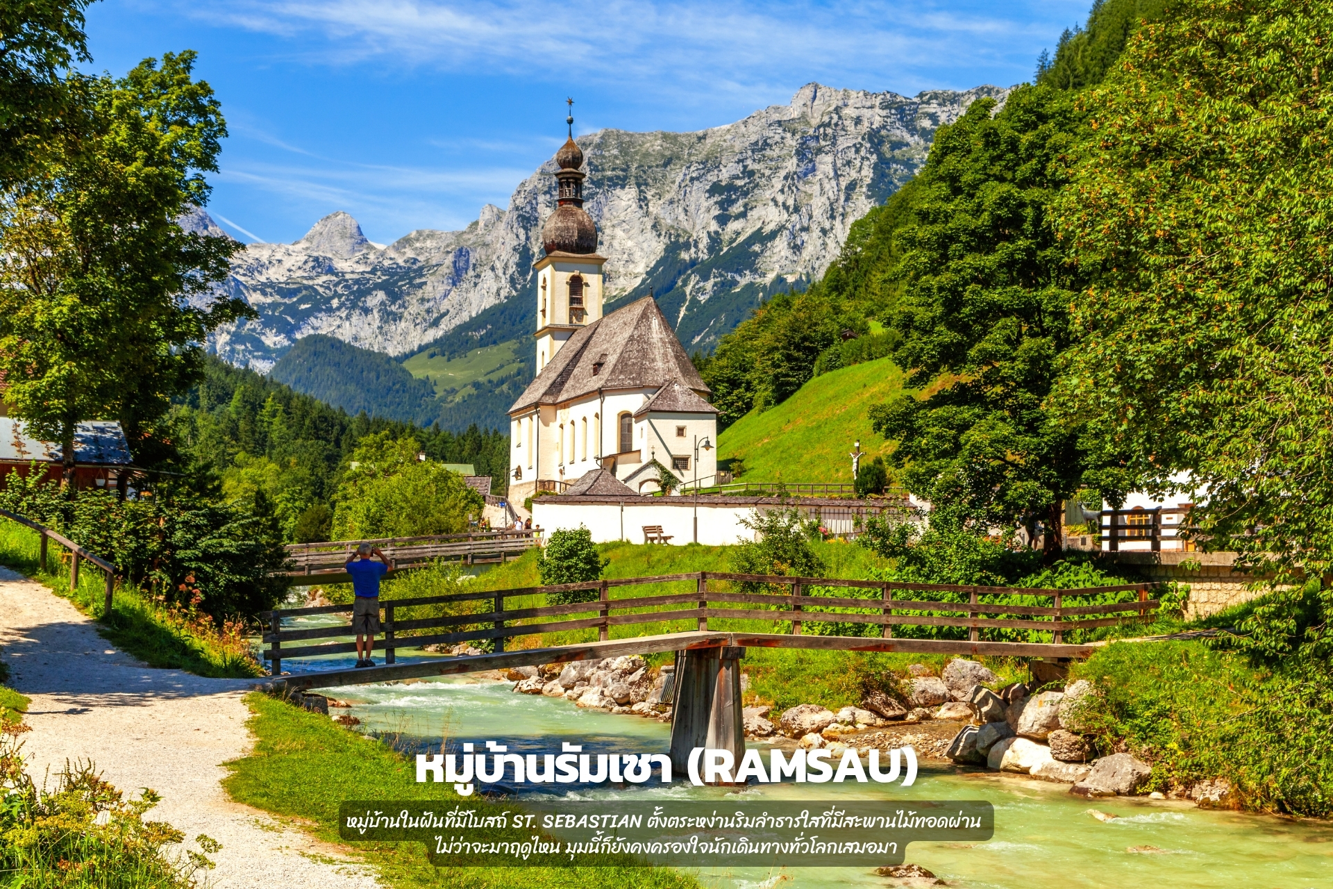 หมู่บ้านในฝันที่มีโบสถ์ St. Sebastian ตั้งตระหง่านริมลำธารใสที่มีสะพานไม้ทอดผ่าน ไม่ว่าจะมาฤดูไหน มุมนี้ก็ยังคงครองใจนักเดินทางทั่วโลกเสมอมา