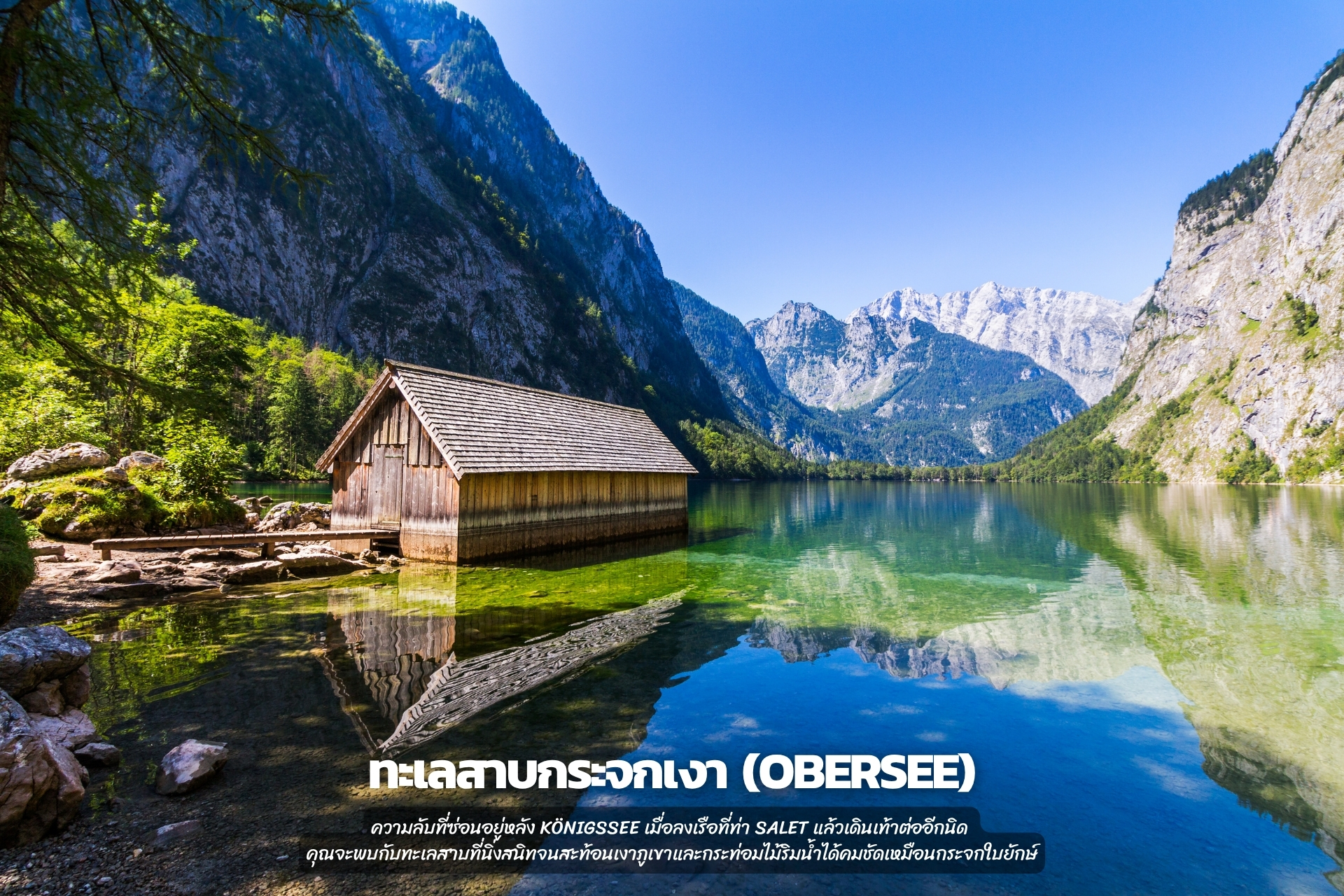 ความลับที่ซ่อนอยู่หลัง Königssee เมื่อลงเรือที่ท่า Salet แล้วเดินเท้าต่ออีกนิด คุณจะพบกับทะเลสาบที่นิ่งสนิทจนสะท้อนเงาภูเขาและกระท่อมไม้ริมน้ำได้คมชัดเหมือนกระจกใบยักษ์
