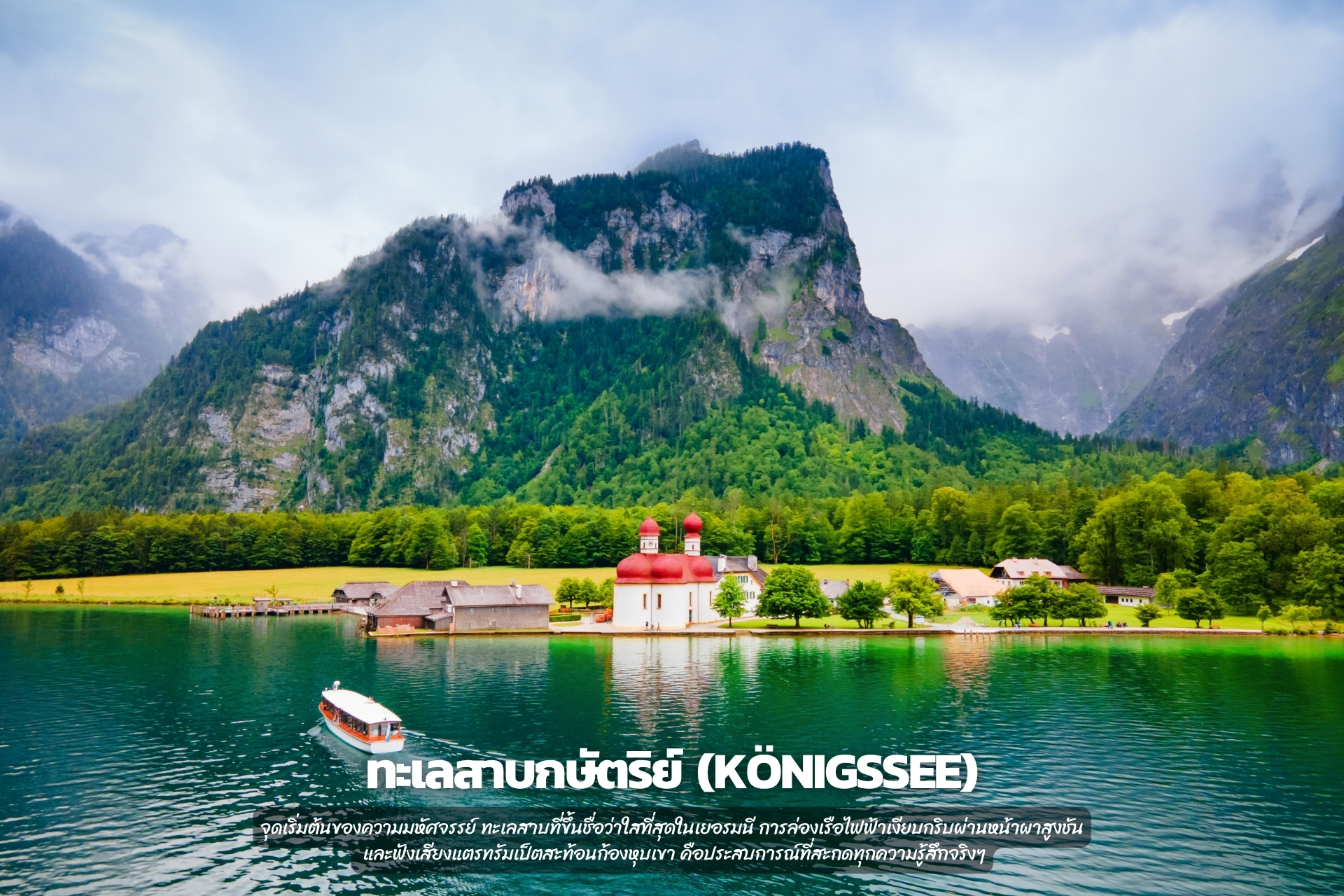 จุดเริ่มต้นของความมหัศจรรย์ ทะเลสาบที่ขึ้นชื่อว่าใสที่สุดในเยอรมนี การล่องเรือไฟฟ้าเงียบกริบผ่านหน้าผาสูงชัน และฟังเสียงแตรทรัมเป็ตสะท้อนก้องหุบเขา คือประสบการณ์ที่สะกดทุกความรู้สึกจริงๆ