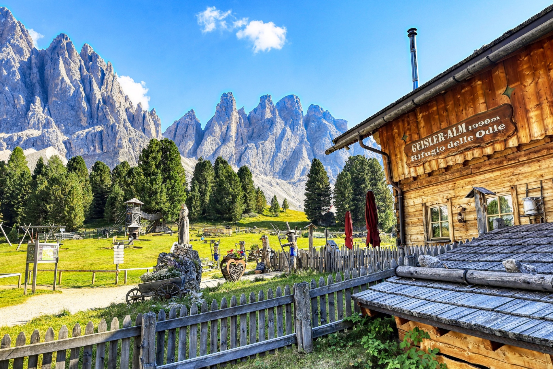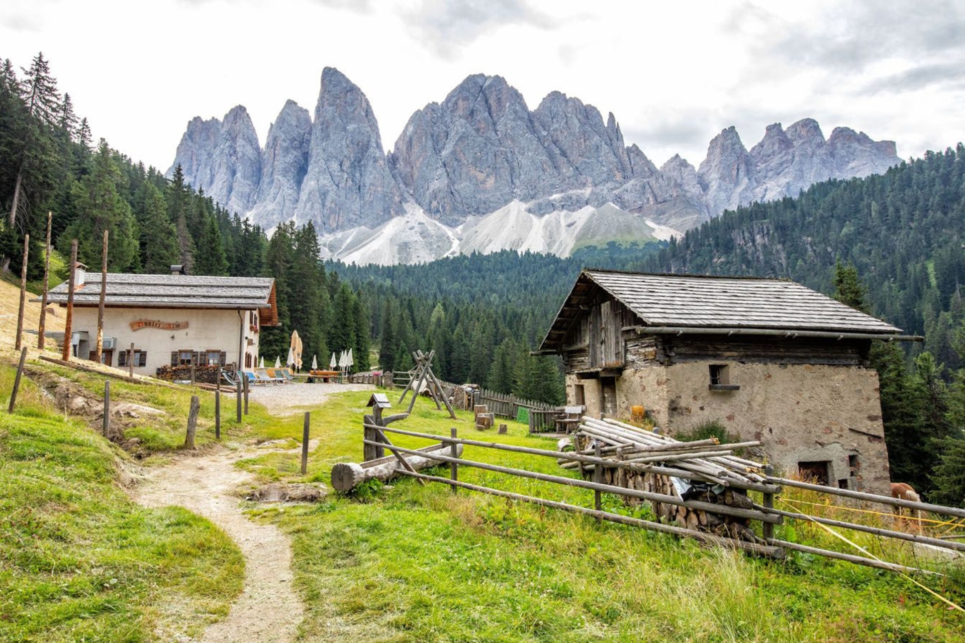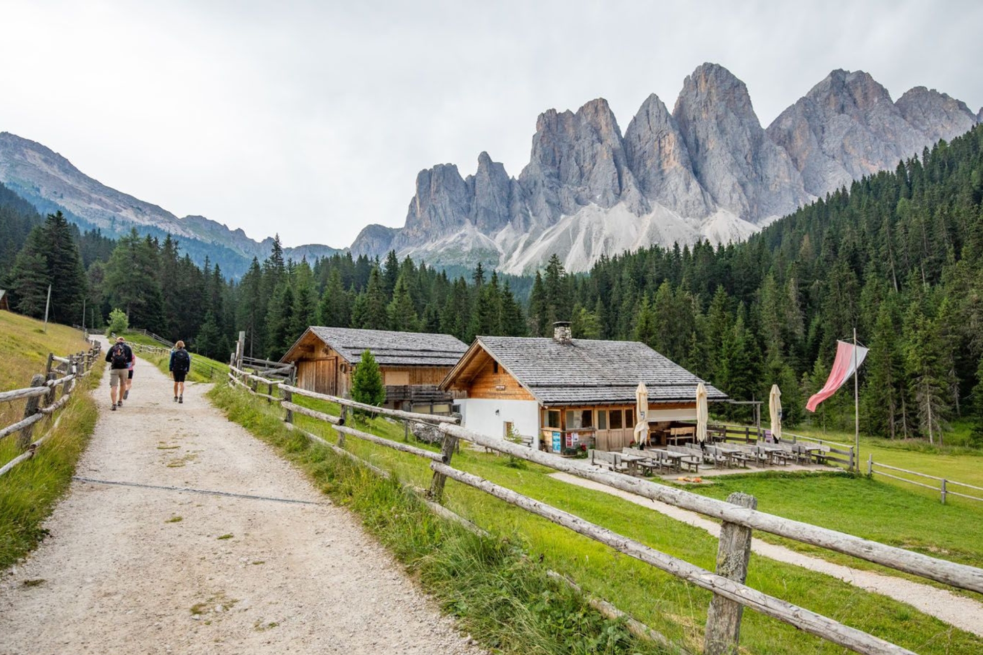 Highlight: ก่อนถึง Geisler Alm เล็กน้อยจะเจอทุ่งหญ้ากว้างที่เป็นจุดชมวิวที่สวยที่สุดแห่งหนึ่ง แนะนำให้หยุดถ่ายรูปมุมกว้างที่เห็นกระท่อมไม้เก่าแก่ตัดกับยอดเขาแหลมคม