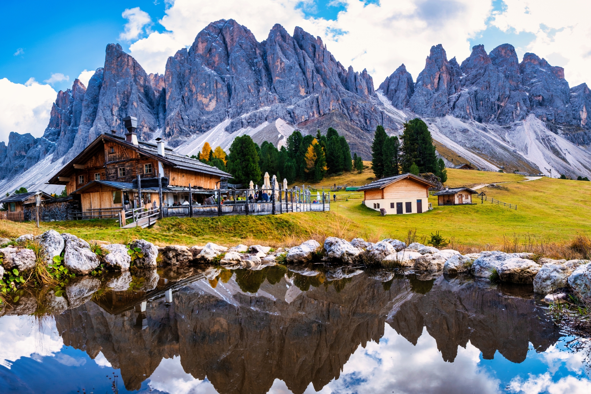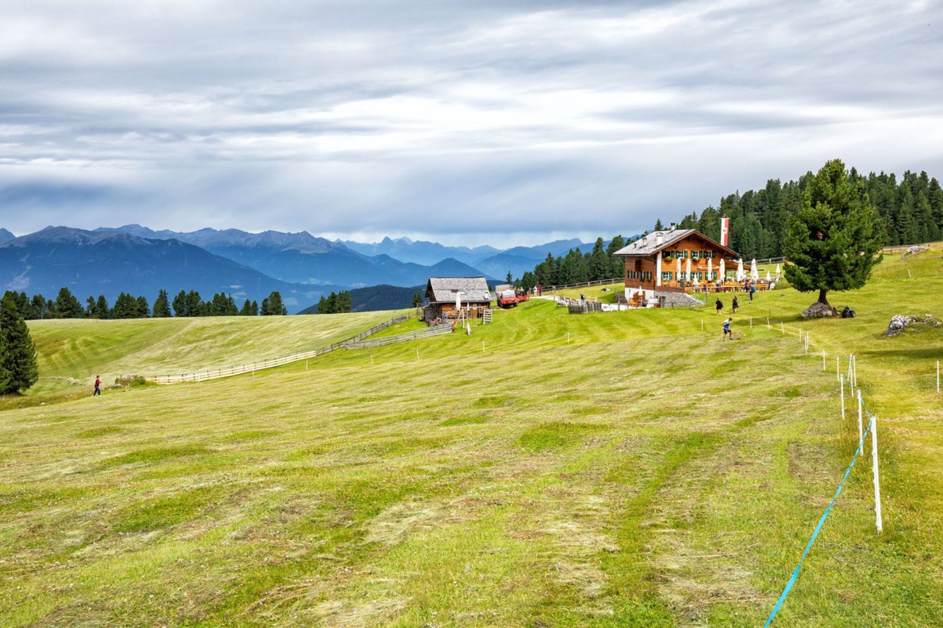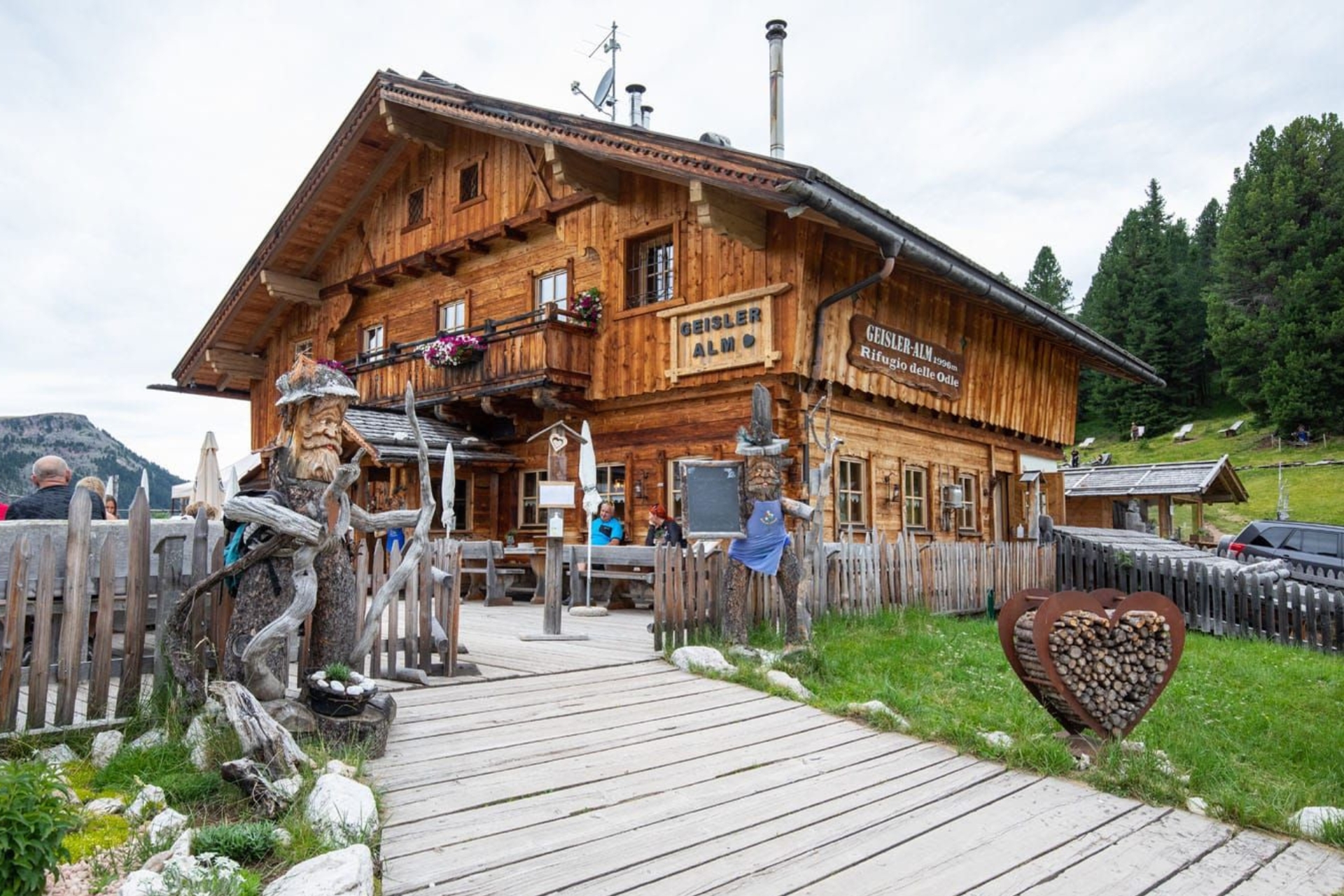 Highlight: ก่อนถึง Geisler Alm เล็กน้อยจะเจอทุ่งหญ้ากว้างที่เป็นจุดชมวิวที่สวยที่สุดแห่งหนึ่ง แนะนำให้หยุดถ่ายรูปมุมกว้างที่เห็นกระท่อมไม้เก่าแก่ตัดกับยอดเขาแหลมคม