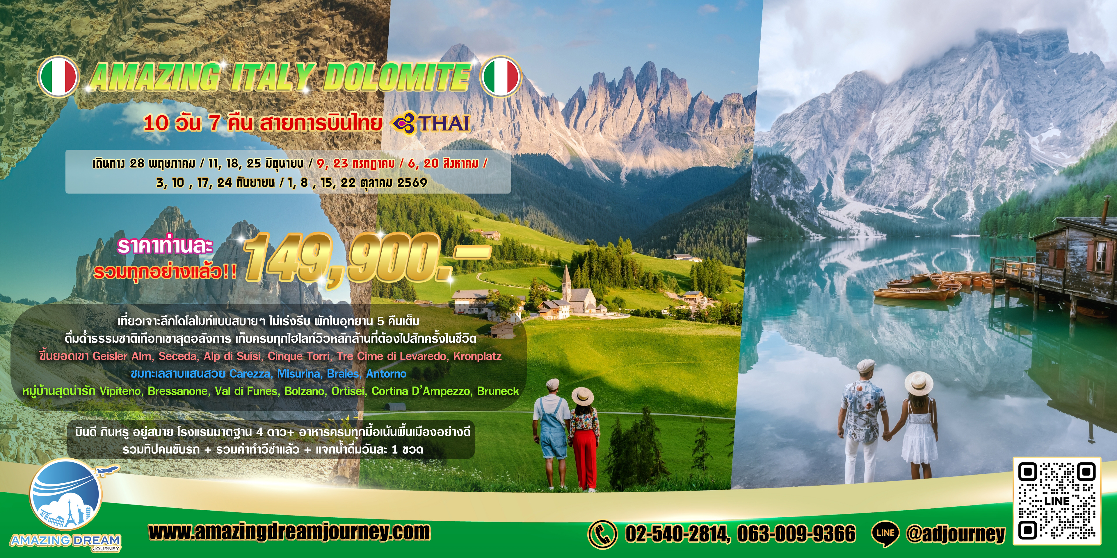 พาคุณสัมผัสเส้นทางขุนเขามรดกโลกที่งดงามที่สุดของอิตาลีเหนือ พร้อมวิวภูผาหินโดโลไมต์ตระการตา ทะเลสาบสีฟ้าใส และหมู่บ้านอัลไพน์สุดโรแมนติก ทุกช่วงทางคือความงามเหนือคำบรรยายที่ต้องมาสัมผัสด้วยตัวเองสักครั้ง