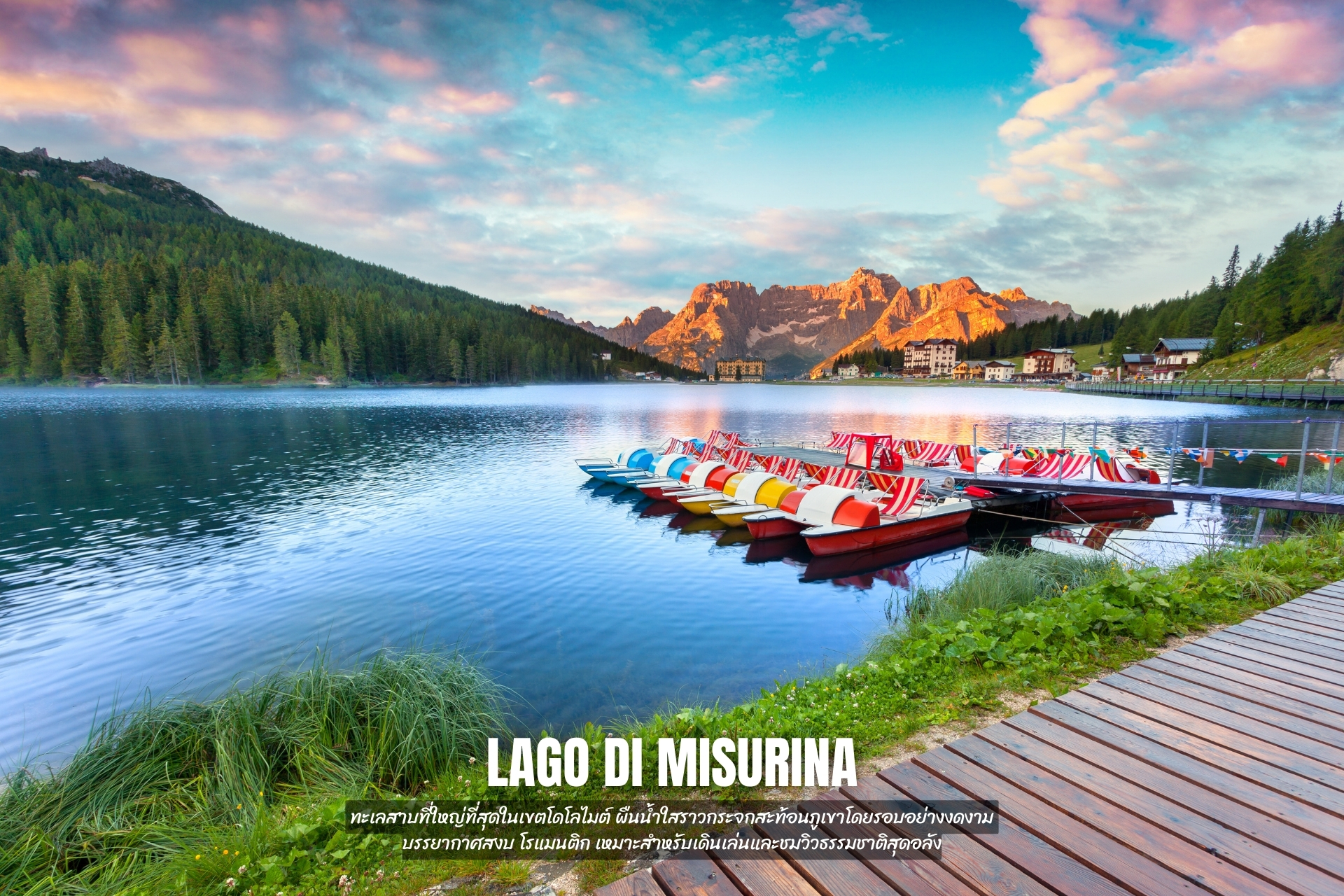 - ชม ทะเลสาบมิซูลิน่า ทะเลสาบธรรมชาติที่สวยที่สุดแห่งหนึ่งของประเทศอิตาลี ทะเลสาบน้ำใสราวกับกระจก