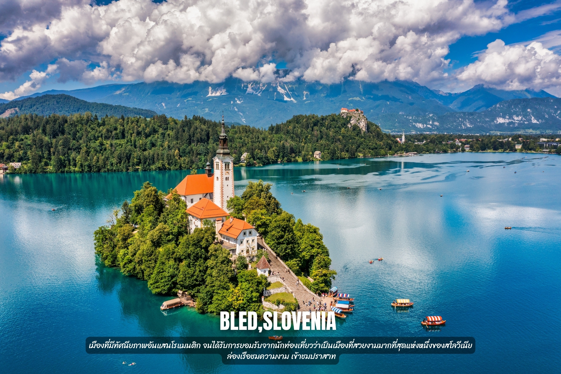 - เที่ยว เมืองเบลด เมืองที่มีทัศนียภาพอันแสนโรแมนติก จนได้รับการยอมรับจากนักท่องเที่ยวว่าเป็นเมืองที่สวยงามมากที่สุดแห่งหนึ่งของสโลวีเนีย ล่องเรือชมความงาม เข้าชมปราสาท