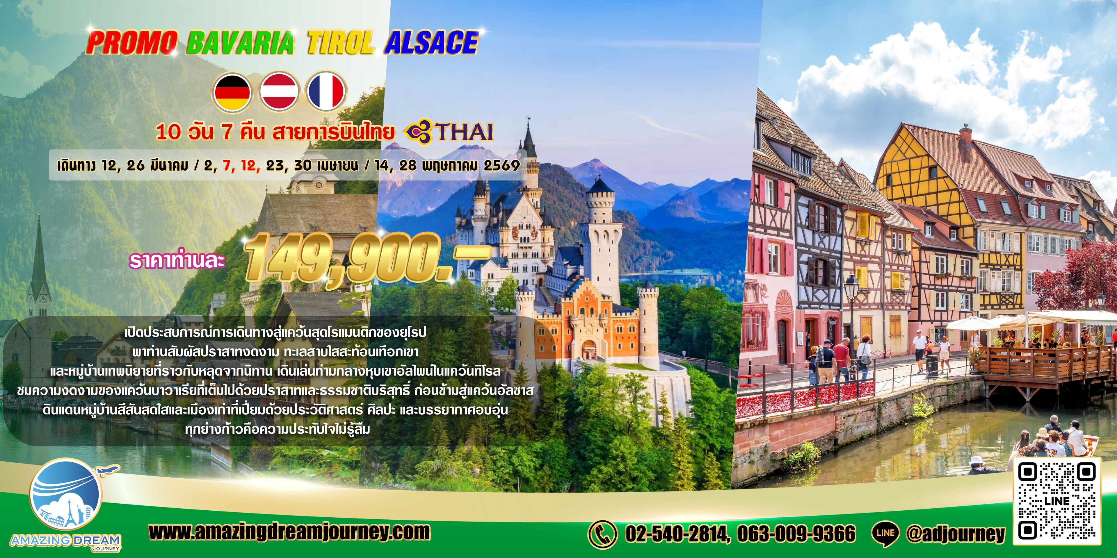 ทัวร์ ยุโรป โปรโมชั่น บาวาเรีย ทิโรล อัลซาส 10 วัน บินตรง TG