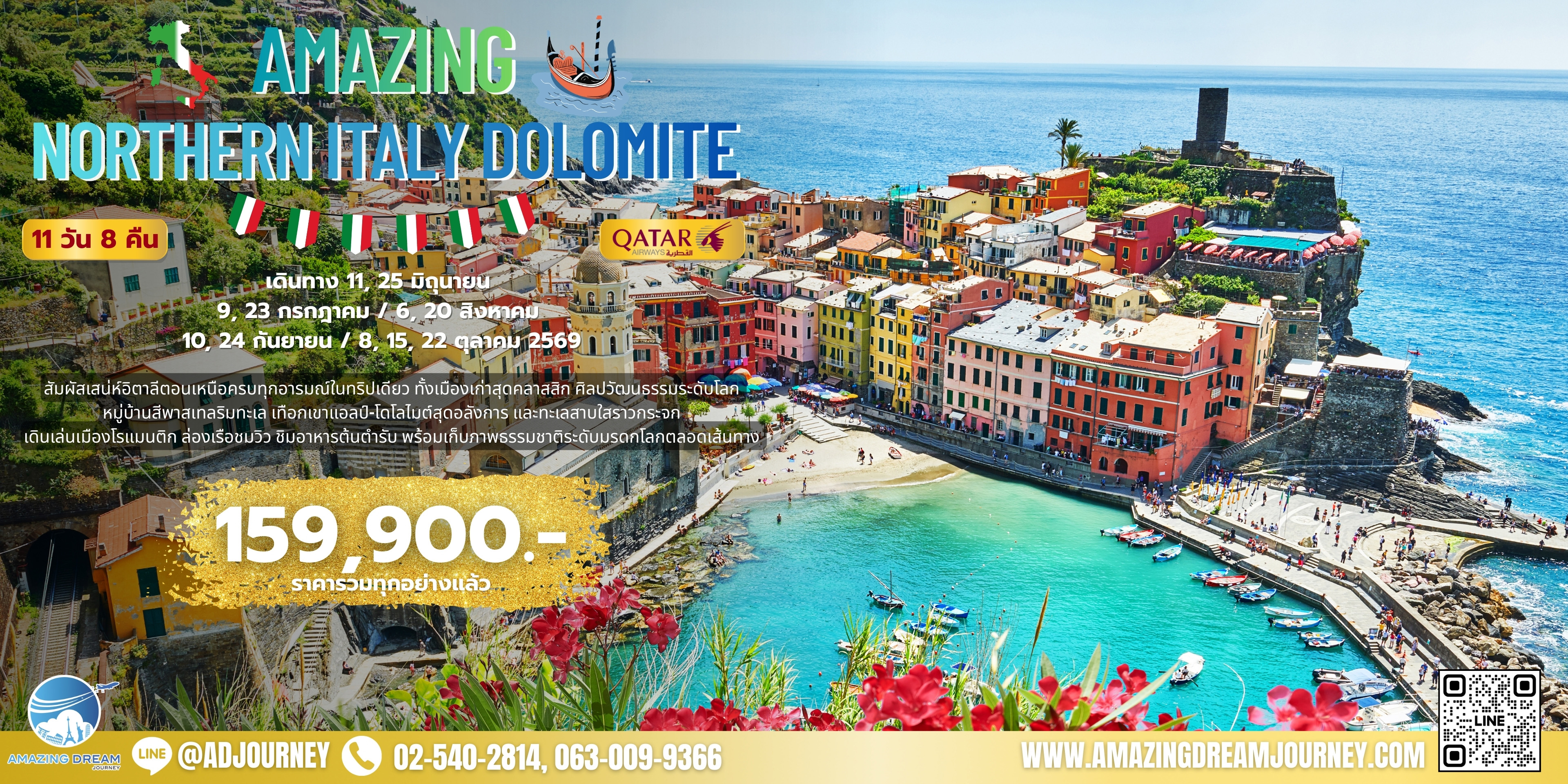 ทัวร์ อเมซิ่ง อิตาลีตอนเหนือ โดโลไมท์ 11 วัน บินกาต้าร์ QR