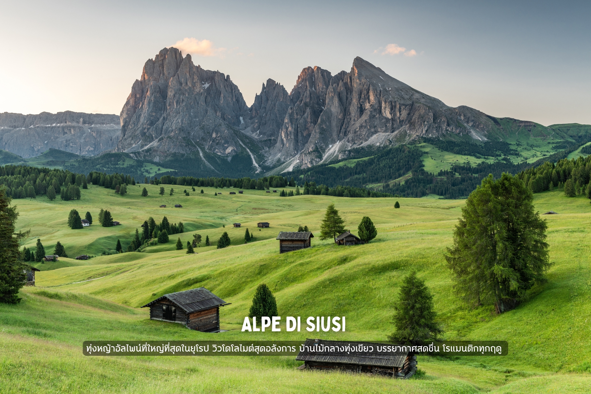 - นั่งกระเช้าชมความงามของ เนินเขา Alpe Di Siusi ทุ่งหญ้าราบเลียบบนภูเขา ที่ได้ขึ้นชื่อว่ากว้างใหญ่ที่สุดในยุโรป