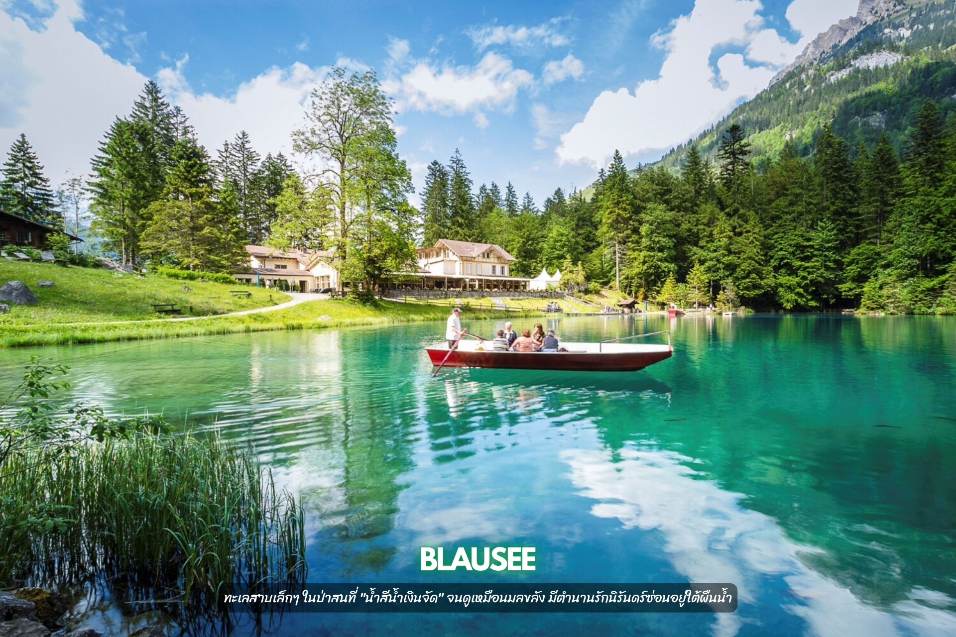 - ชมทะเลสาบ Blausee ทะเลสาบสีฟ้าใสราวคริสตัล ท่ามกลางป่าสนเขียวและอากาศบริสุทธิ์