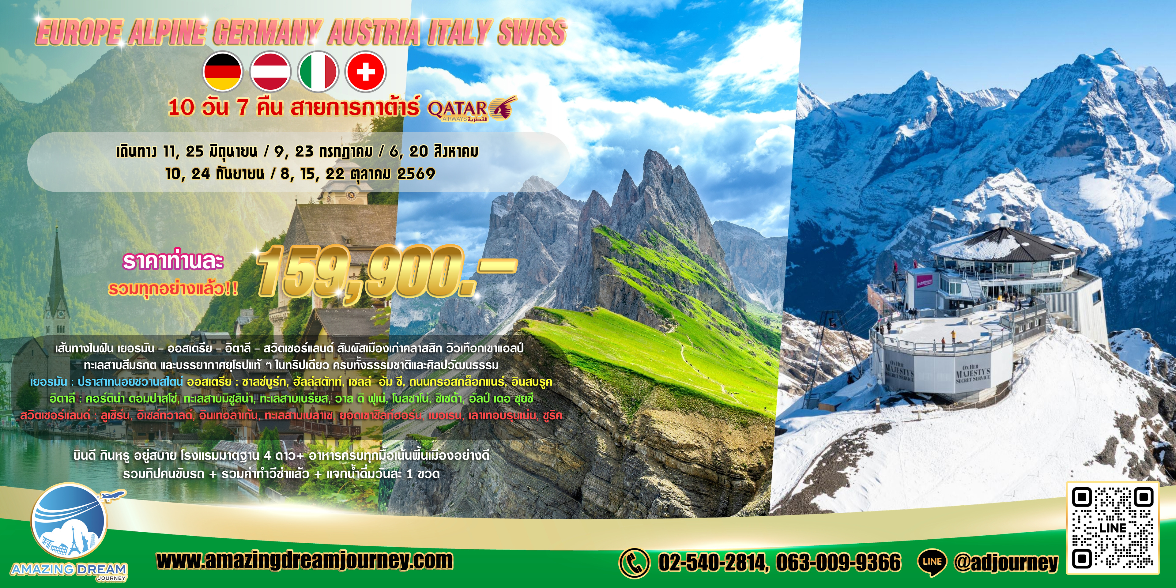 ทัวร์ ยุโรป แอลป์ โดโลไมท์ เยอรมัน ออสเตรีย อิตาลี สวิตเซอร์แลนด์ 10 วัน บิน QR
