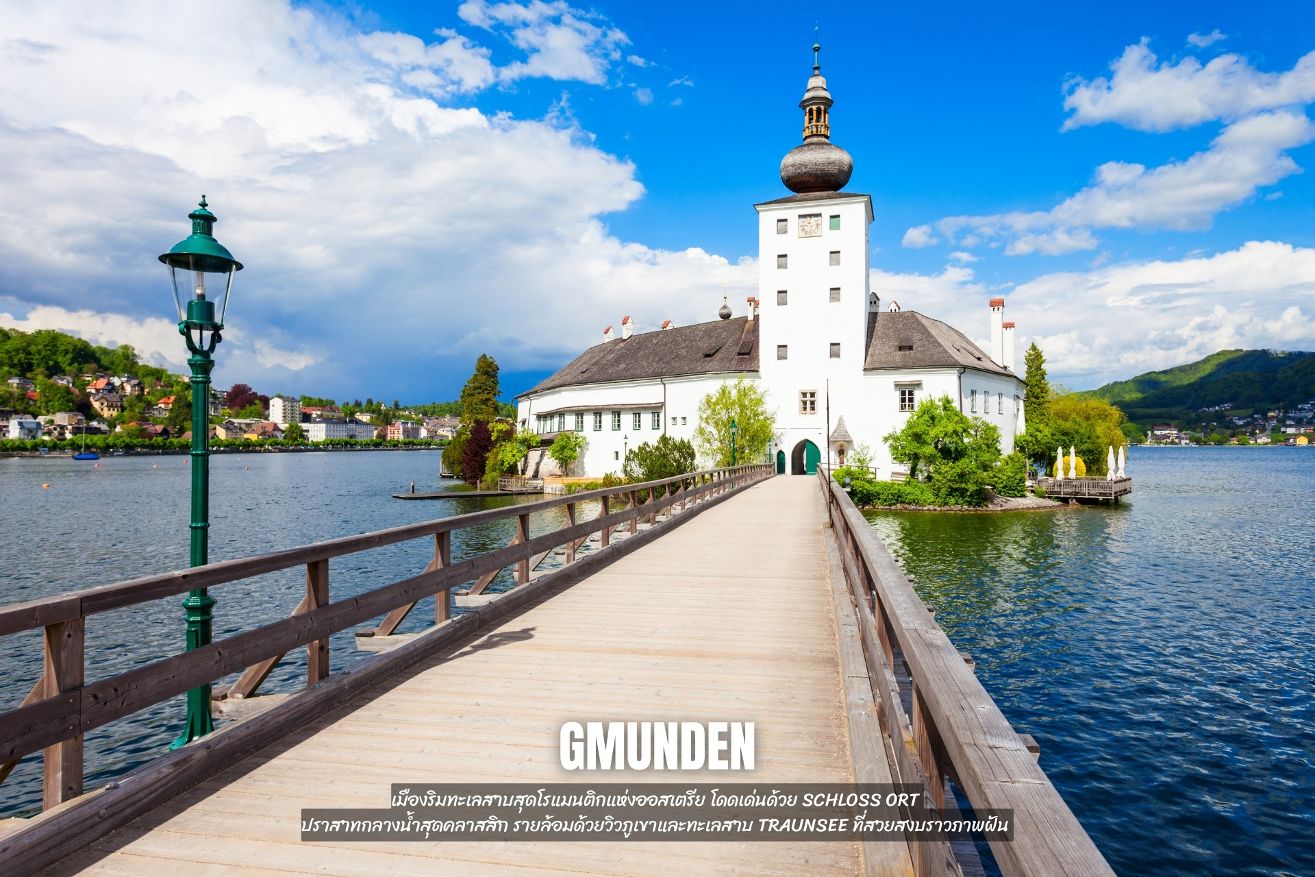 - เที่ยว Gmunden เมืองริมทะเลสาบสุดโรแมนติกแห่งออสเตรีย โดดเด่นด้วย Schloss Ort ปราสาทกลางน้ำสุดคลาสสิก รายล้อมด้วยวิวภูเขาและทะเลสาบ Traunsee ที่สวยสงบราวภาพฝัน