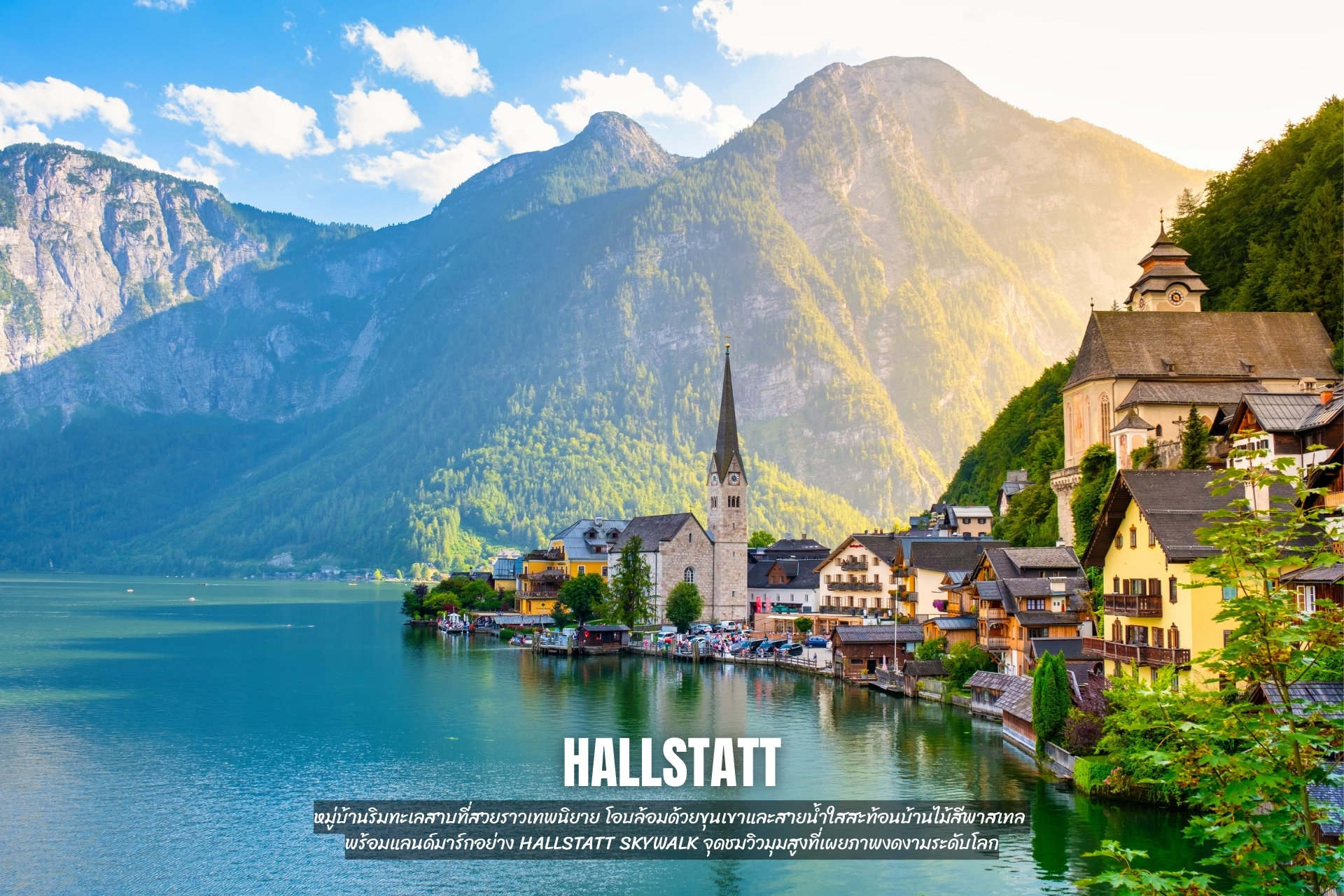 - เที่ยว Hallstatt หมู่บ้านริมทะเลสาบที่สวยราวเทพนิยาย โอบล้อมด้วยขุนเขาและสายน้ำใสสะท้อนบ้านไม้สีพาสเทล พร้อมแลนด์มาร์กอย่าง Hallstatt Skywalk จุดชมวิวมุมสูงที่เผยภาพงดงามระดับโลก