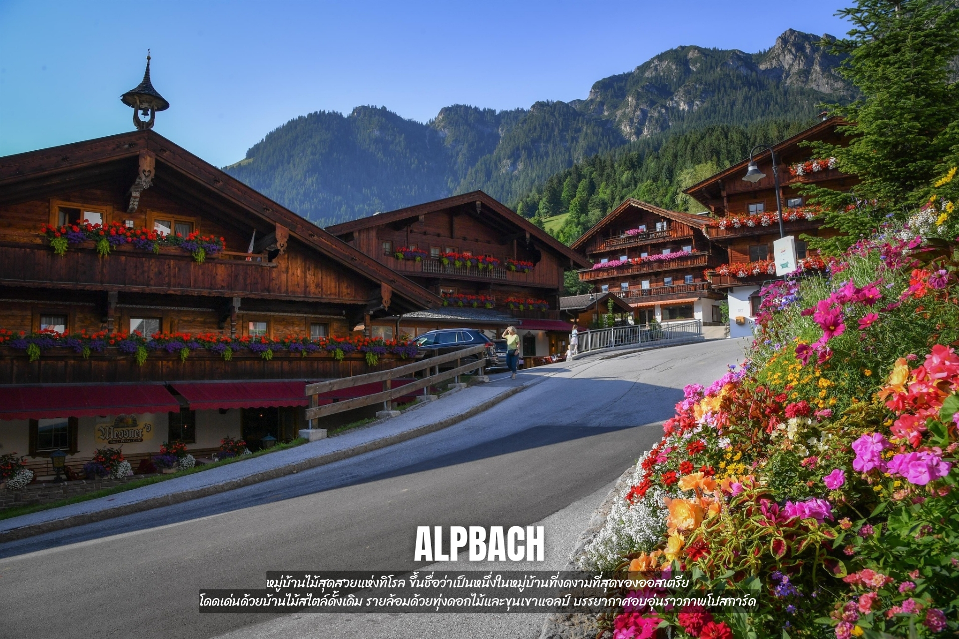 - เที่ยว Alpbach หมู่บ้านไม้สุดสวยแห่งทิโรล ขึ้นชื่อว่าเป็นหนึ่งในหมู่บ้านที่งดงามที่สุดของออสเตรีย โดดเด่นด้วยบ้านไม้สไตล์ดั้งเดิม รายล้อมด้วยทุ่งดอกไม้และขุนเขาแอลป์ บรรยากาศอบอุ่นราวภาพโปสการ์ด