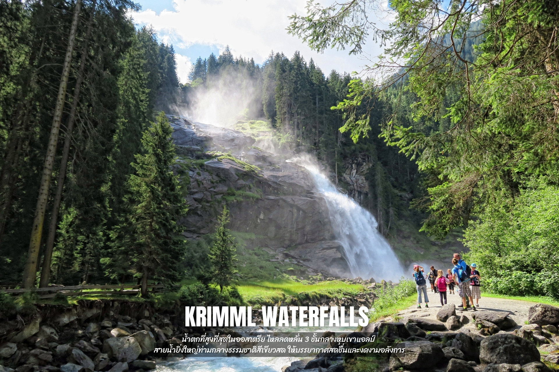 - ชม Krimml Waterfalls น้ำตกที่สูงที่สุดในออสเตรีย ไหลลดหลั่น 3 ชั้นกลางหุบเขาแอลป์ สายน้ำยิ่งใหญ่ท่ามกลางธรรมชาติสีเขียวสด ให้บรรยากาศสดชื่นและงดงามอลังการ