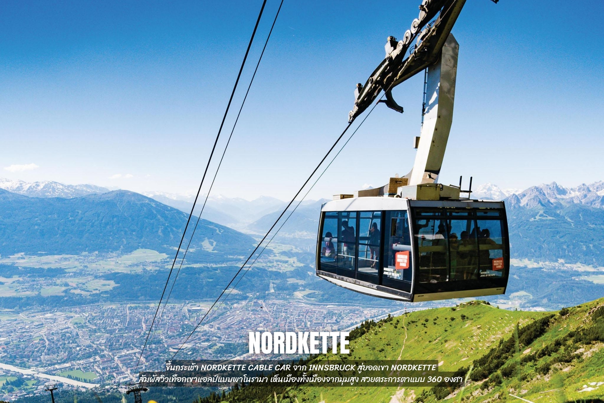 - ขึ้นกระเช้า Nordkette Cable Car จาก Innsbruck สู่ยอดเขา Nordkette สัมผัสวิวเทือกเขาแอลป์แบบพาโนรามา เห็นเมืองทั้งเมืองจากมุมสูง สวยตระการตาแบบ 360 องศา