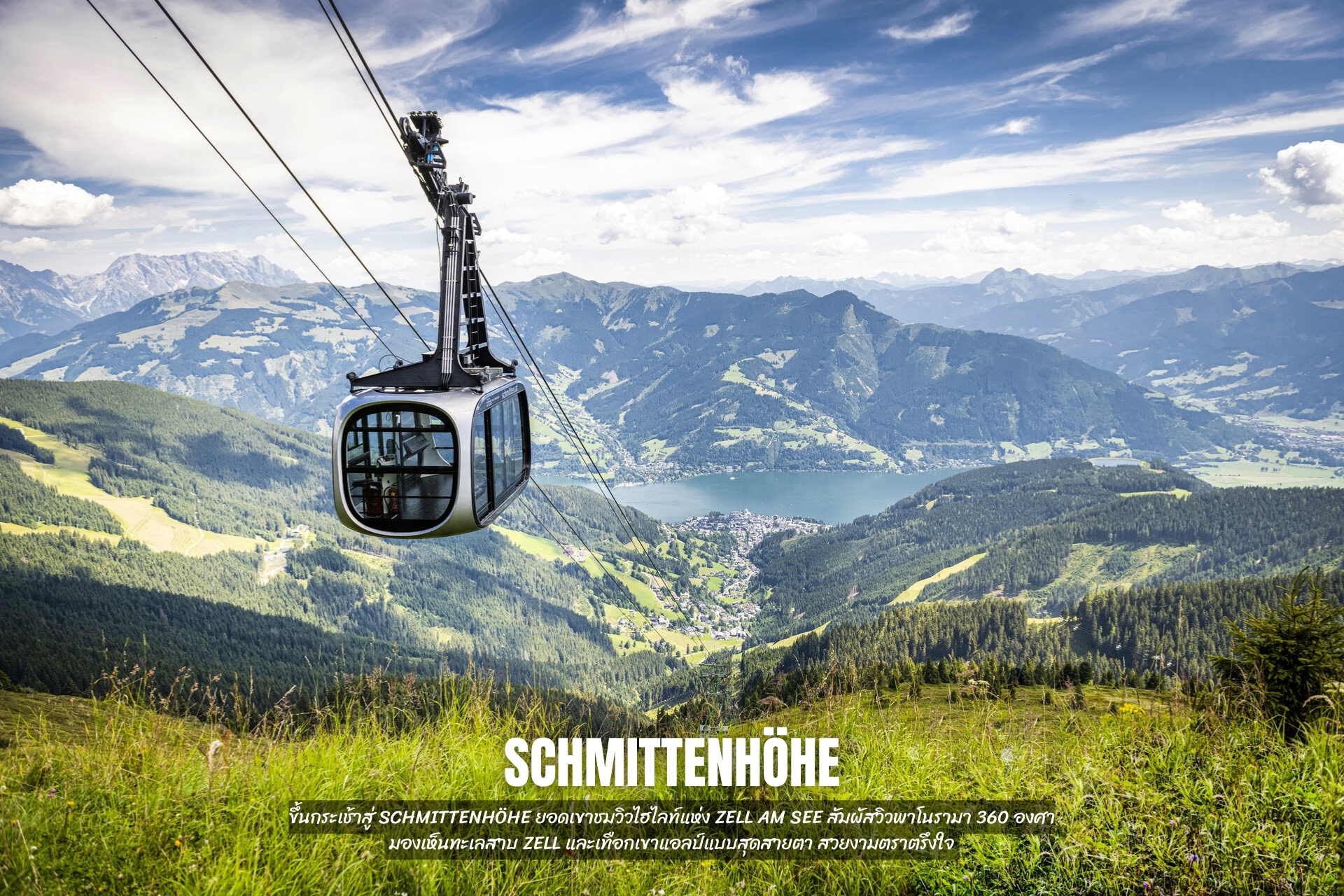 - ขึ้นกระเช้าสู่ Schmittenhöhe ยอดเขาชมวิวไฮไลท์แห่ง Zell am See สัมผัสวิวพาโนรามา 360 องศา มองเห็นทะเลสาบ Zell และเทือกเขาแอลป์แบบสุดสายตา สวยงามตราตรึงใจ