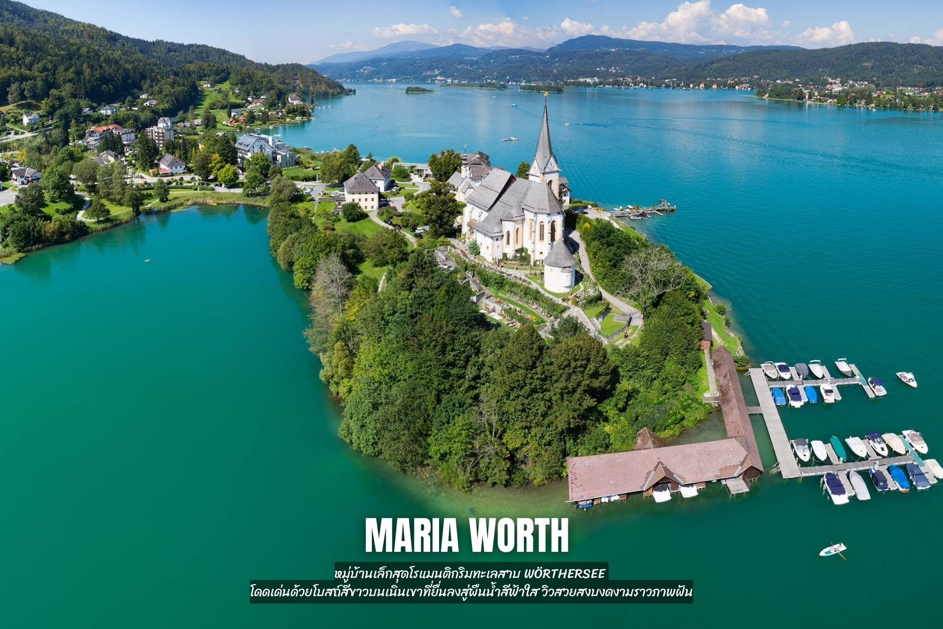 - เที่ยว Maria Worth หมู่บ้านเล็กสุดโรแมนติกริมทะเลสาบ Wörthersee โดดเด่นด้วยโบสถ์สีขาวบนเนินเขาที่ยื่นลงสู่ผืนน้ำสีฟ้าใส วิวสวยสงบงดงามราวภาพฝัน