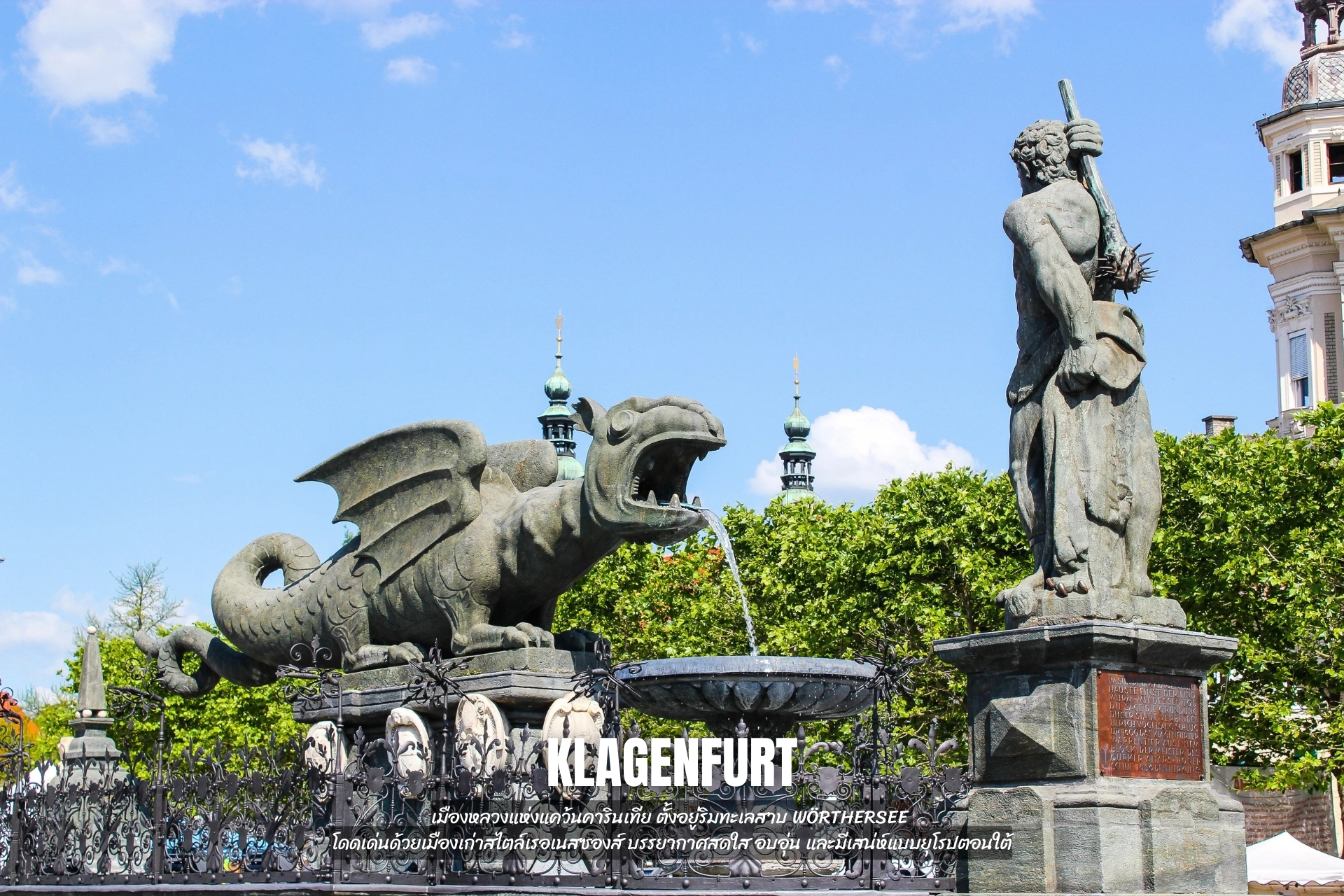 - เที่ยว Klagenfurt เมืองหลวงแห่งแคว้นคารินเทีย ตั้งอยู่ริมทะเลสาบ Wörthersee โดดเด่นด้วยเมืองเก่าสไตล์เรอเนสซองส์ บรรยากาศสดใส อบอุ่น และมีเสน่ห์แบบยุโรปตอนใต้