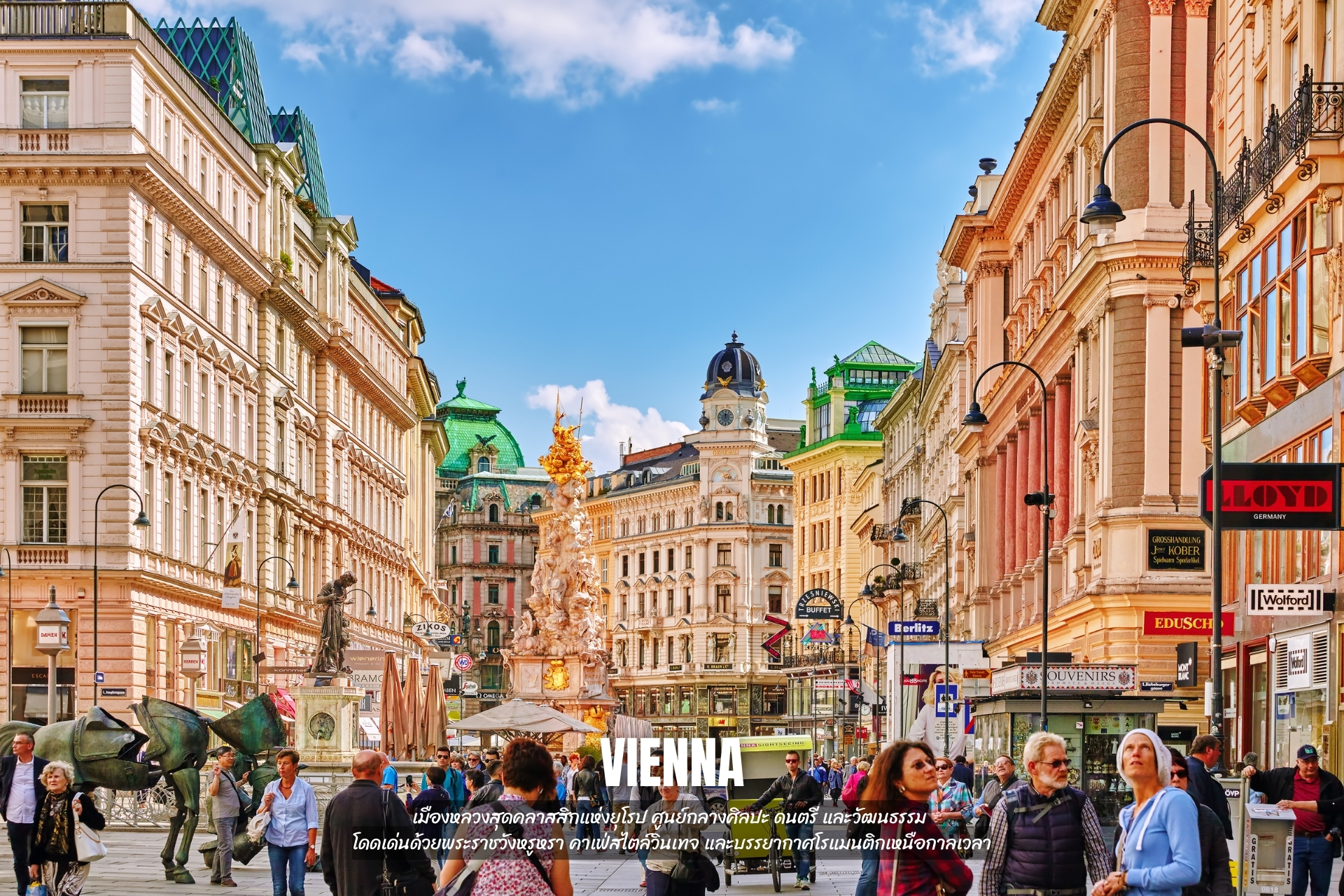 - เที่ยว Vienna เมืองหลวงสุดคลาสสิกแห่งยุโรป ศูนย์กลางศิลปะ ดนตรี และวัฒนธรรม โดดเด่นด้วยพระราชวังหรูหรา คาเฟ่สไตล์วินเทจ และบรรยากาศโรแมนติกเหนือกาลเวลา