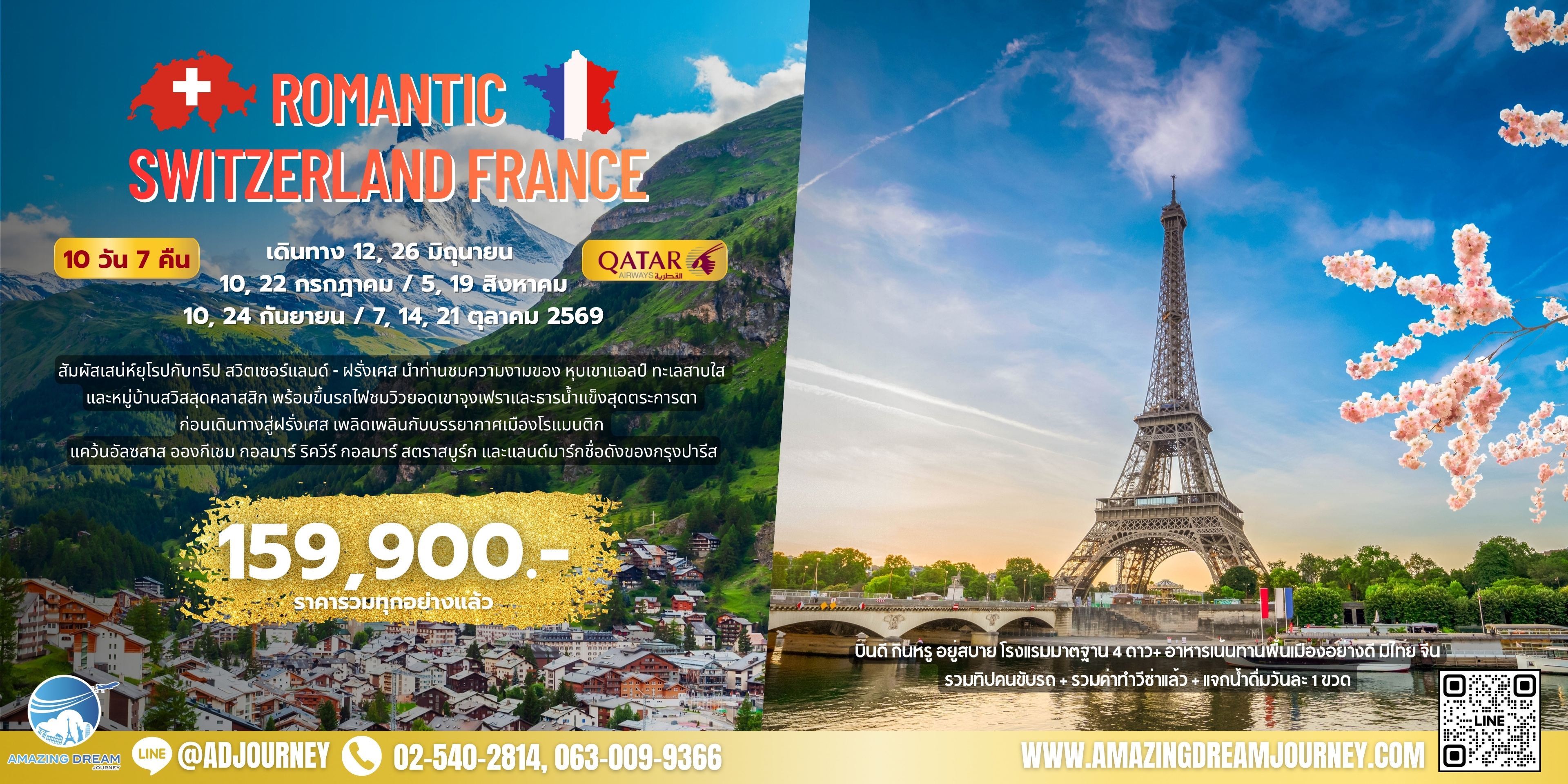 ทัวร์ ยุโรป โรแมนติก สวิส ฝรั่งเศส 10 วัน สายการบินกาต้าร์ QR