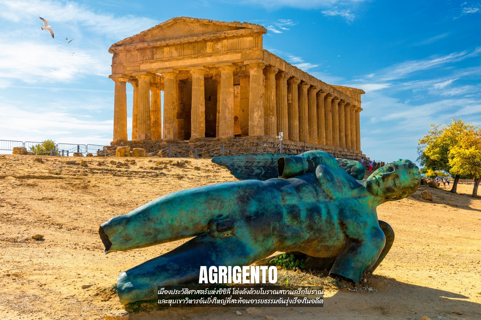 - เที่ยว Agrigento เมืองเก่าแก่ที่มีอายุกว่า 2,500 ปี เมืองมีวิหารที่เป็นสถาปัตยกรรมแบบกรีก สถาปัตยกรรมที่มีชื่อเสียงของเมืองคือ หุบเขาแห่งวิหาร มรดกโลก