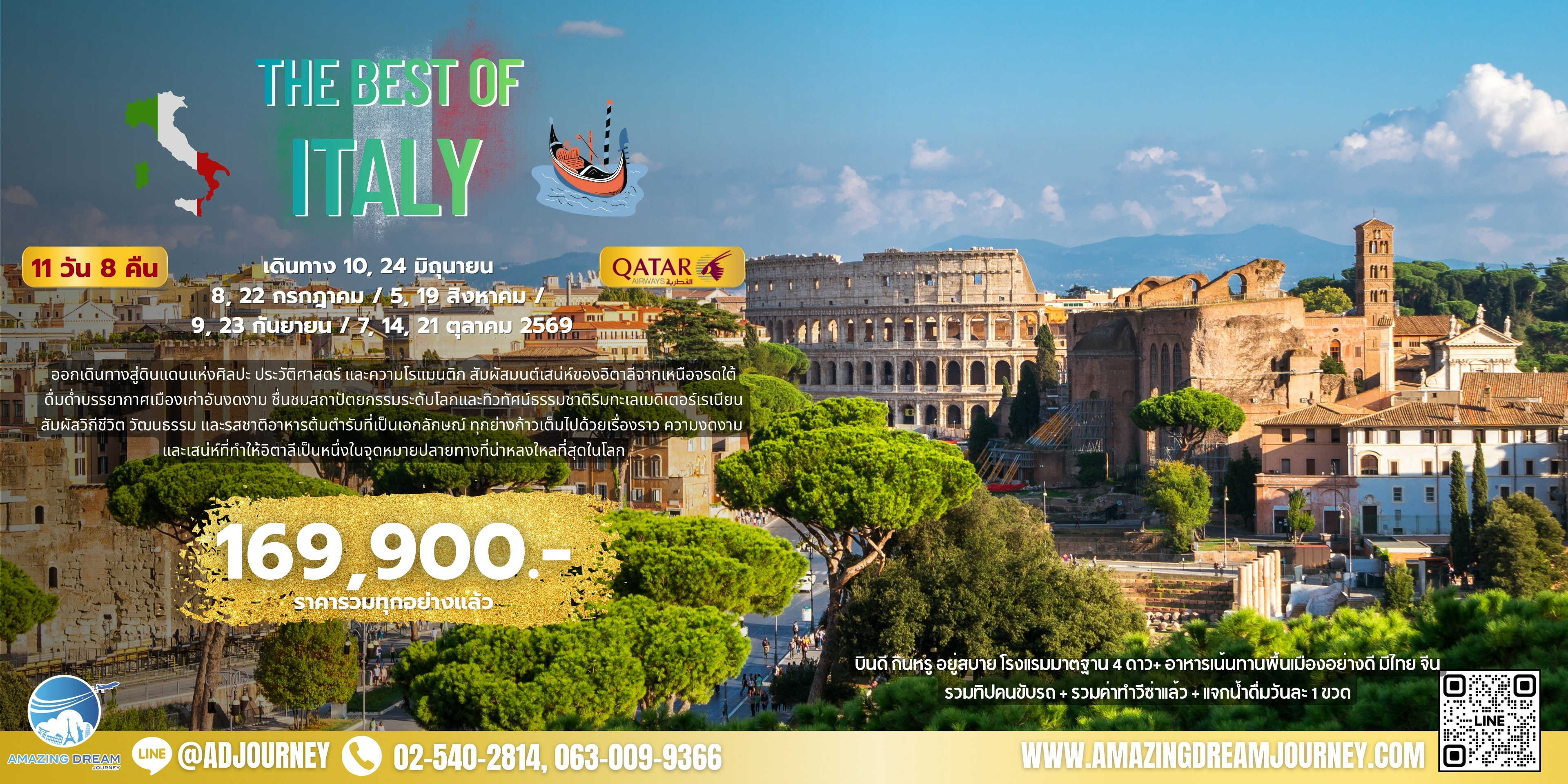 ทัวร์ ยุโรป ดีที่สุดของ อิตาลี 11 วัน 8 คืน บินกาตาร์ QR