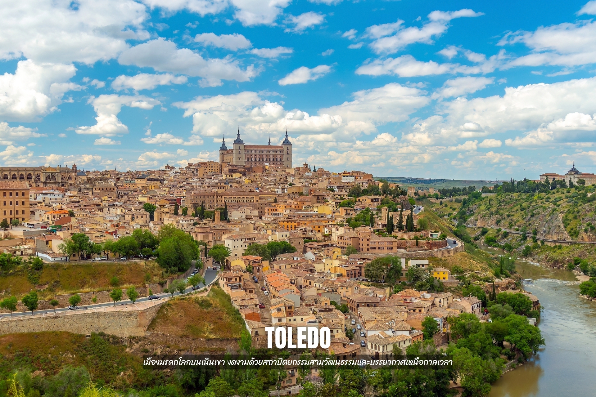 - เที่ยว Toledo เมืองหลวงเก่าของอาณาจักรสเปนโบราณ และยังเป็นเมืองมรดกโลกที่มีสถาปัตยกรรมงดงาม มากด้วยศิลปกรรมแบบลูกผสม เคยเป็นเมืองขึ้นของชาวมัวร์ ทั้งมุสลิม คริสต์ และยิว