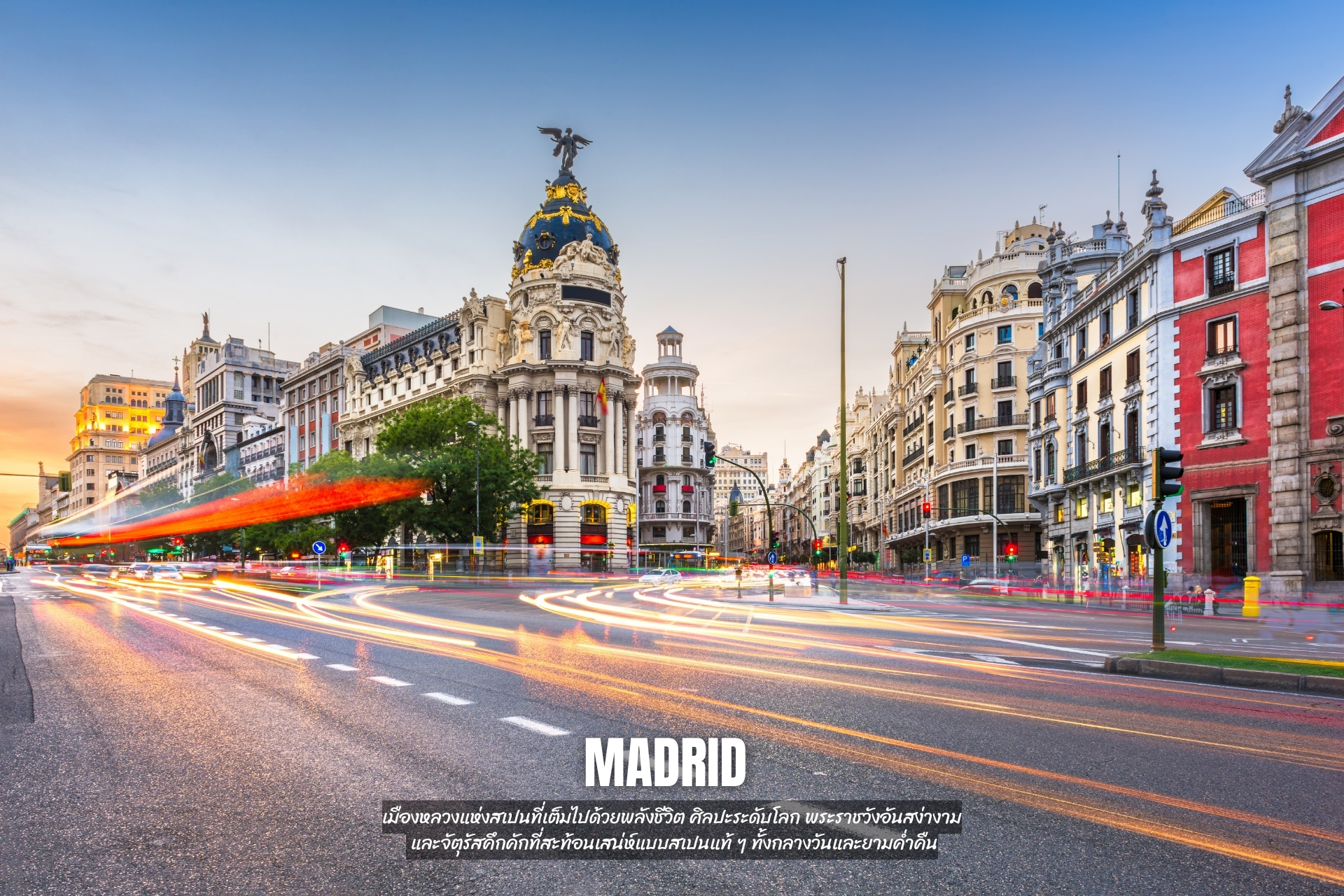 - เที่ยว Madrid เมืองหลวงของสเปน จุดหมายปลายทางที่มีเสน่ห์ด้วยสถาปัตยกรรมงดงาม ประวัติศาสตร์ที่น่าศึกษา วัฒนธรรมที่มีชีวิตชีวาอันหลากหลาย และบรรยากาศที่คึกคัก
