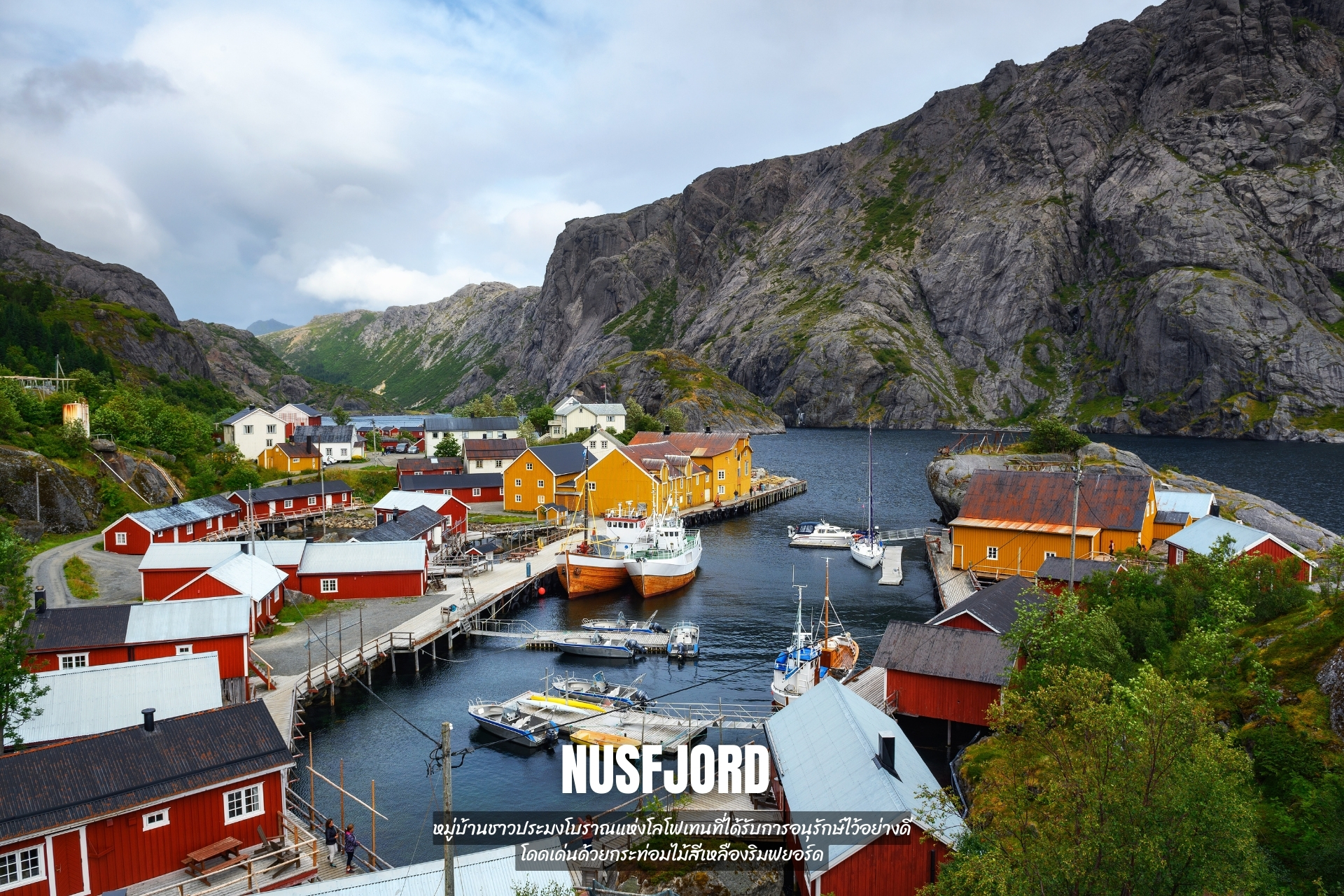 - เที่ยว Nusfjord หมู่บ้านชาวประมงโบราณแห่งโลโฟเทนที่ได้รับการอนุรักษ์ไว้อย่างดี โดดเด่นด้วยกระท่อมไม้สีเหลืองริมฟยอร์ด
