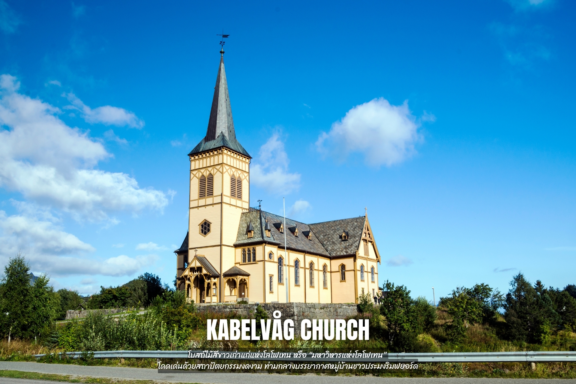 - ชม Kabelvag Church โบสถ์ไม้สวยในหมู่บ้าน Kabelvåg สถาปัตยกรรมคลาสสิก บรรยากาศสงบ ริมฟยอร์ด Lofoten