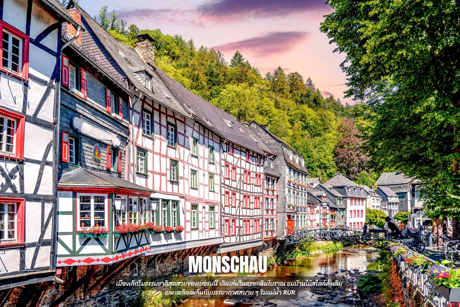 - เที่ยว Monschau เมืองเล็กริมธรรมชาติสุดสวยของเยอรมนี เดินเล่นในตรอกหินโบราณ ชมบ้านไม้สไตล์ดั้งเดิม และเพลิดเพลินกับบรรยากาศสบาย ๆ ริมแม่น้ำ Rur
