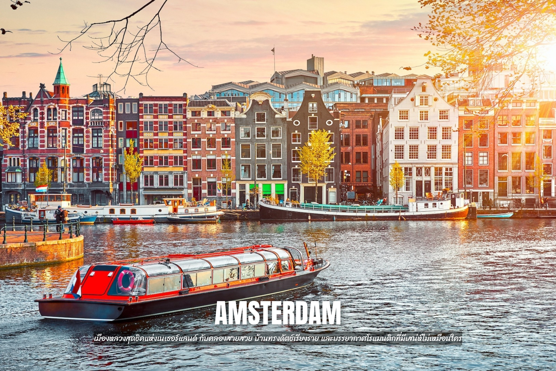 - เที่ยว Amsterdam เมืองหลวงเนเธอร์แลนด์ ชมคลองสวย เดินเล่นย่านวัฒนธรรม พิพิธภัณฑ์ชื่อดัง และบรรยากาศเมืองสุดชิคแบบยุโรป ล่องเรือ Lover Boat สัมผัสความโรแมนติกบนคลองเนเธอร์แลนด์ เพลิดเพลินกับวิวเมือง สะพาน และบ้านเก่าสวยงาม พร้อมบรรยากาศสุดชิลคู่คนรัก