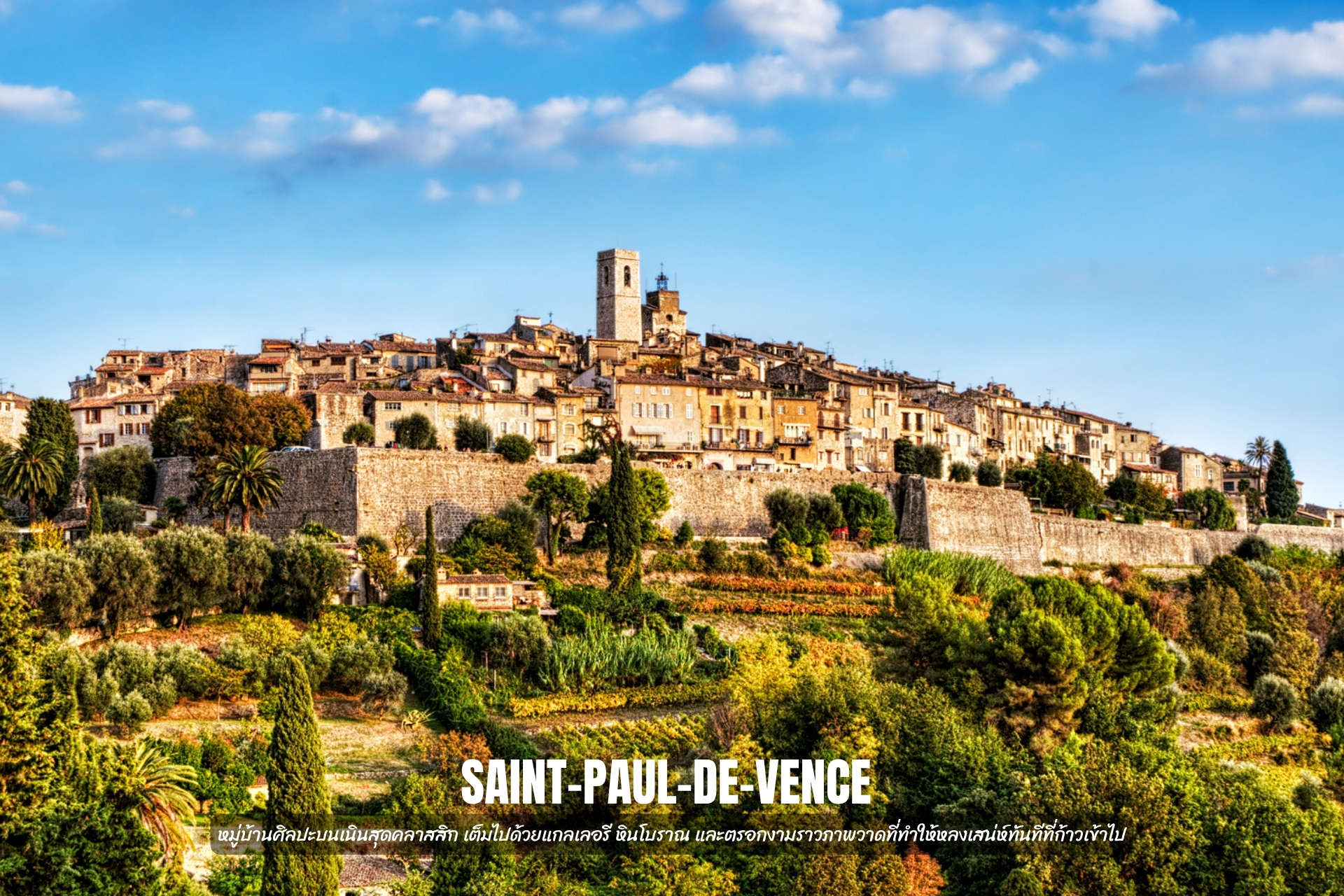- ชม Saint-Paul-de-Vence หมู่บ้านศิลปะบนเนินสุดคลาสสิก เต็มไปด้วยแกลเลอรี หินโบราณ และตรอกงามราวภาพวาดที่ทำให้หลงเสน่ห์ทันทีที่ก้าวเข้าไป