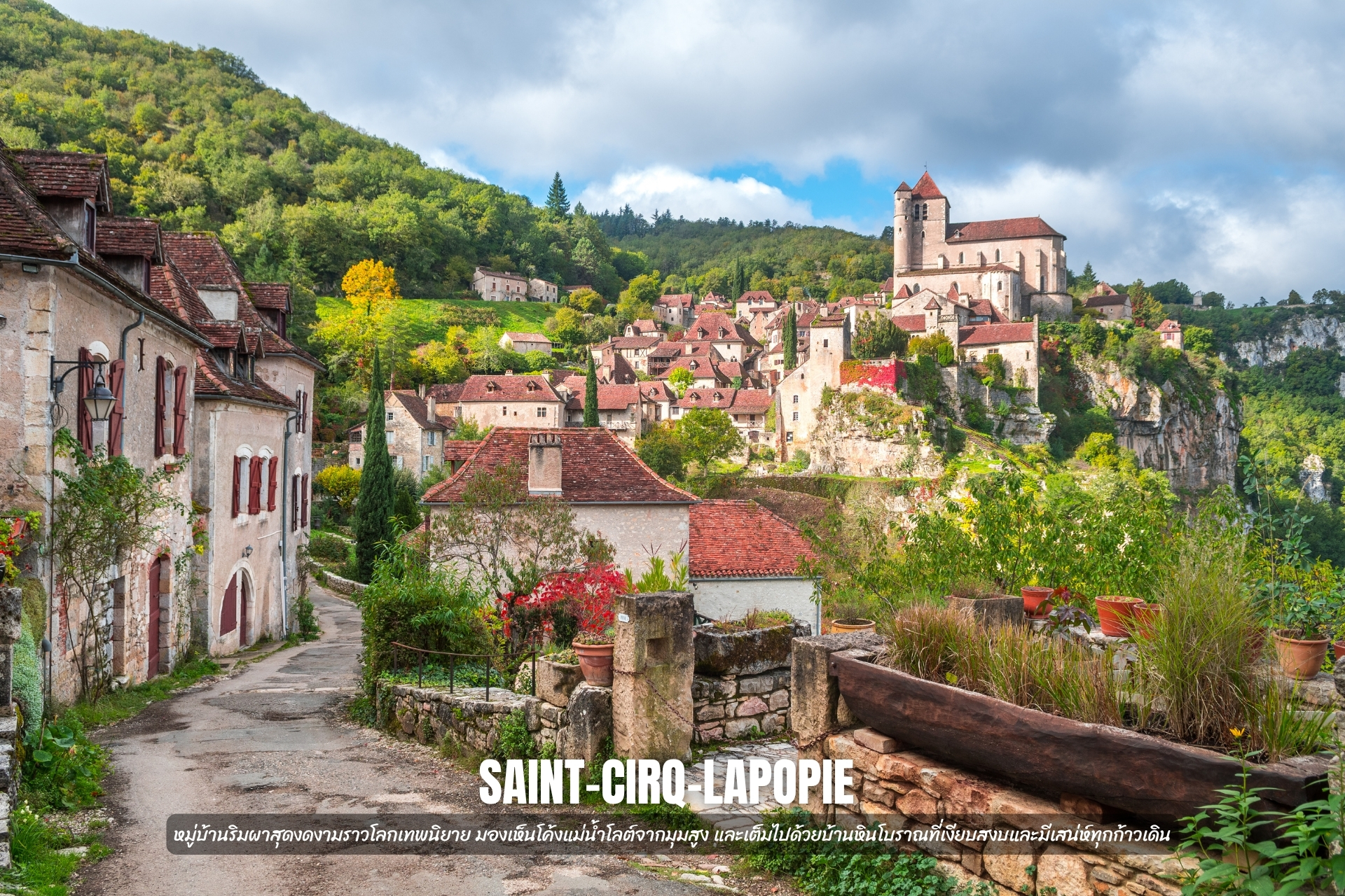 - ชมหมู่บ้าน Saint-Cirq-Lapopie หมู่บ้านริมผาสุดงดงามราวโลกเทพนิยาย มองเห็นโค้งแม่น้ำโลต์จากมุมสูง และเต็มไปด้วยบ้านหินโบราณที่เงียบสงบและมีเสน่ห์ทุกก้าวเดิน