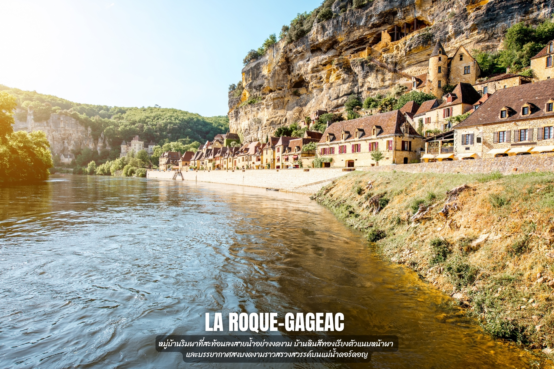 - ชมหมู่บ้าน La Roque-Gageac หมู่บ้านริมผาที่สะท้อนลงสายน้ำอย่างงดงาม บ้านหินสีทองเรียงตัวแนบหน้าผา และบรรยากาศสงบงดงามราวสรวงสวรรค์บนแม่น้ำดอร์ดอญ