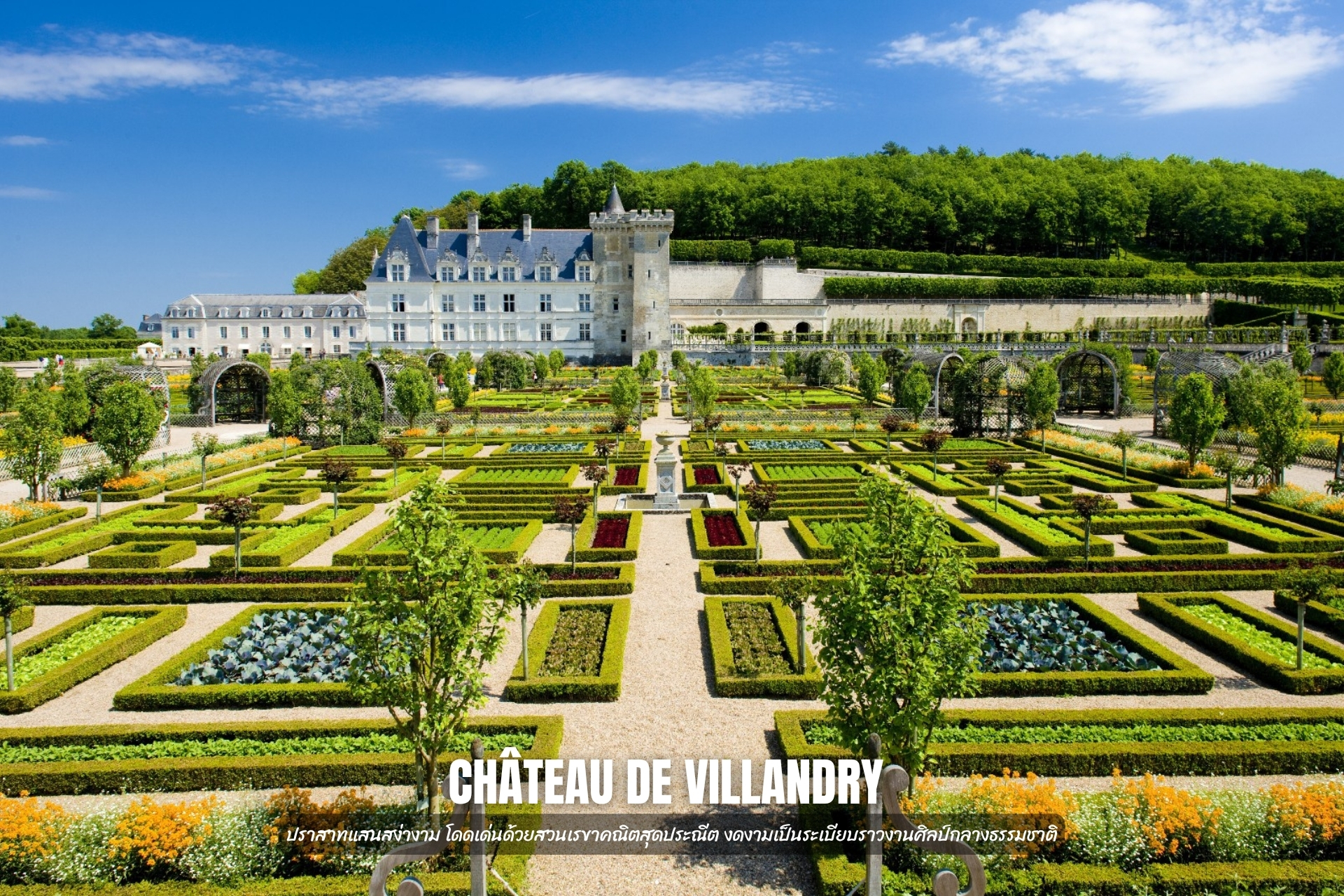 - ชม Château de Villandry ปราสาทแสนสง่างาม โดดเด่นด้วยสวนเรขาคณิตสุดประณีต งดงามเป็นระเบียบราวงานศิลป์กลางธรรมชาติ