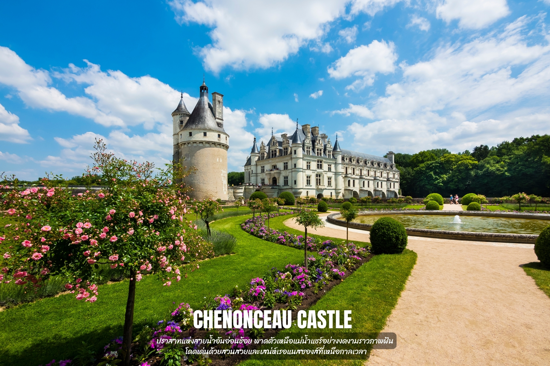 - ชม Chenonceau Castle ปราสาทแสนงดงามที่ทอดตัวเหนือสายน้ำ โดดเด่นด้วยความอ่อนช้อยและโรแมนติก ได้รับการขนานนามว่าเป็นหนึ่งในปราสาทที่สวยที่สุด