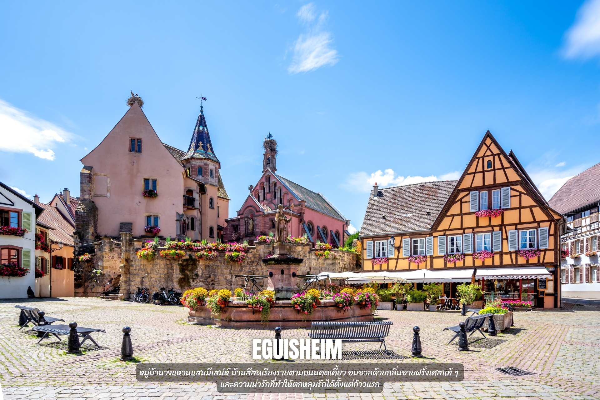 - ชม หมู่บ้าน Eguisheim หมู่บ้านวงแหวนแสนมีเสน่ห์ บ้านสีสดเรียงรายตามถนนคดเคี้ยว อบอวลด้วยกลิ่นอายฝรั่งเศสแท้ ๆ และความน่ารักที่ทำให้ตกหลุมรักได้ตั้งแต่ก้าวแรก